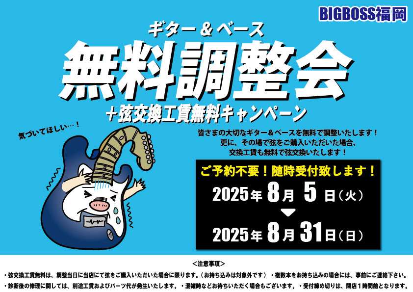 皆様の大切なギター&ベースを無料で調整いたします。