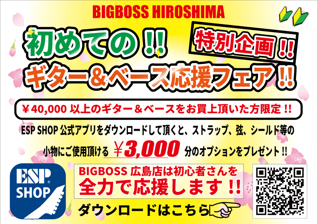 当店BIGBOSS広島店はギター製造メーカーESPが運営する直営店となっております。