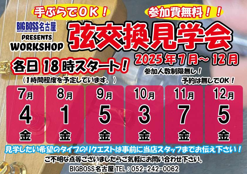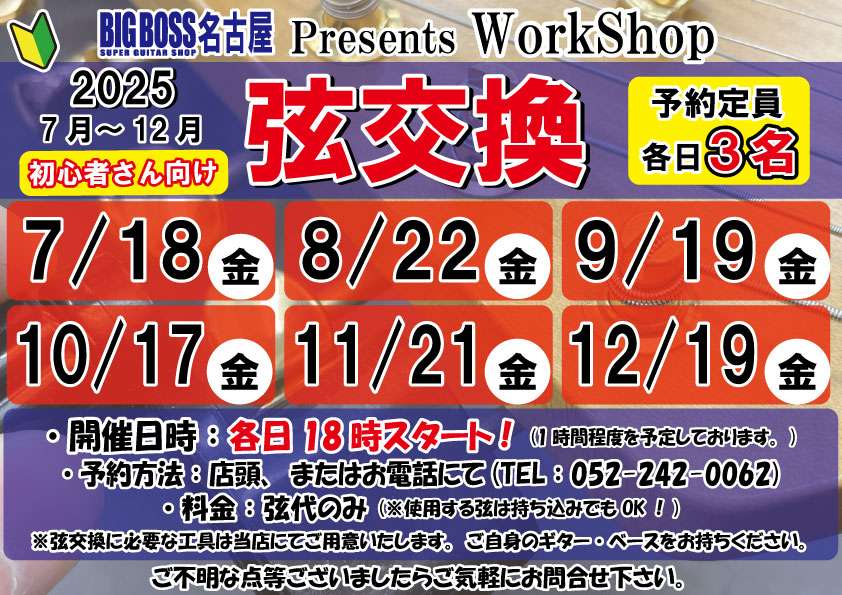2025年もあと少し! 新しい年を迎える前に今年一年使用した楽器を調整&クリーニングしちゃいましょう♪ 期間中に「弦交換」「セットアップ」「フレットクリーニング」の3項目をご依頼頂いた方に当店から”高...