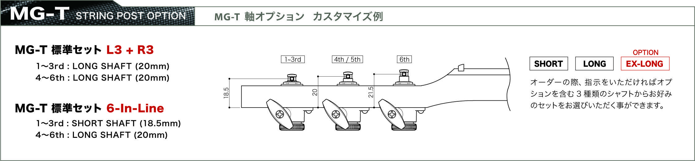 実はこのMG-Tシリーズ、弦を巻き付けるシャフトの長さを3種類から選ぶことができます!