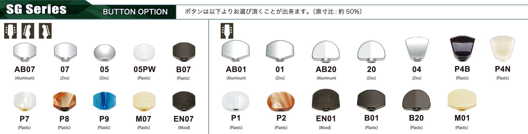 実はGOTOHのギターペグ、注文であればボタン(ペグのツマミ部分)を選べるんです!
