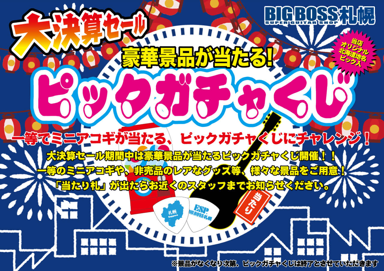 大決算セール期間中は豪華景品が当たるピックガチャくじ開催!!