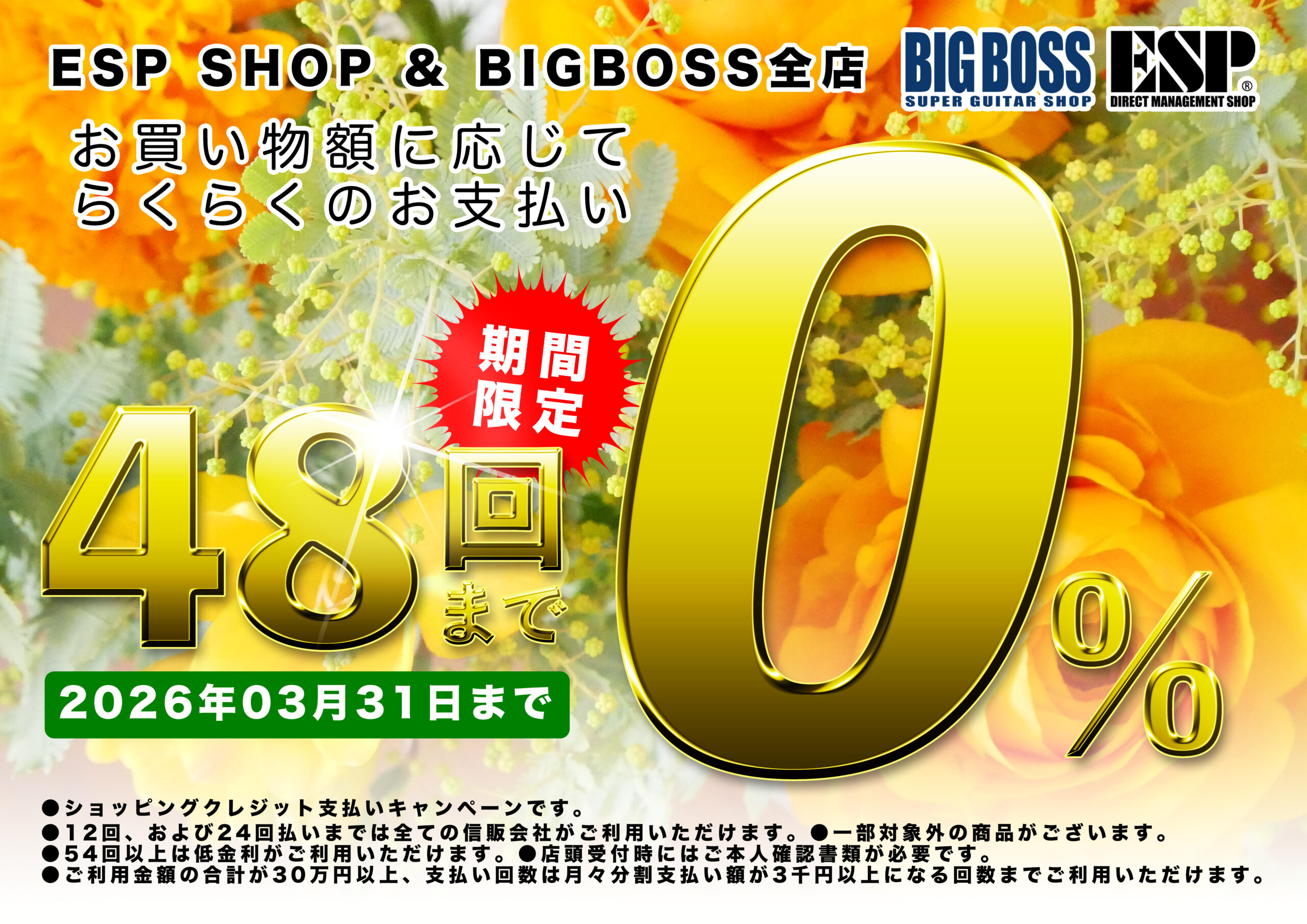 今なら合計30万円を超えるお買い物で最大48回払いまで金利手数料0%!