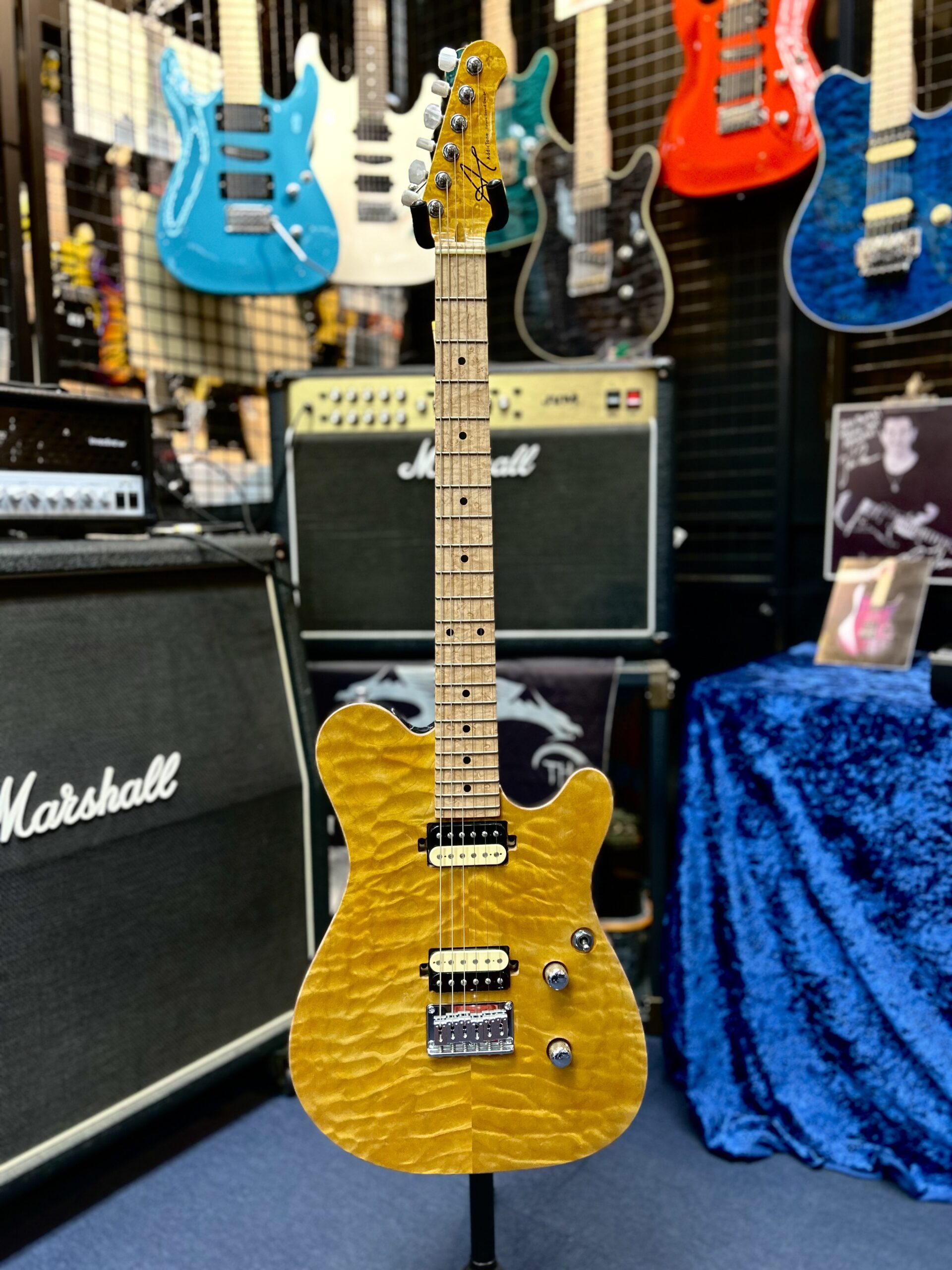 ギラギラのキルトメイプルトップにバーズアイメイプルのネックと指板。