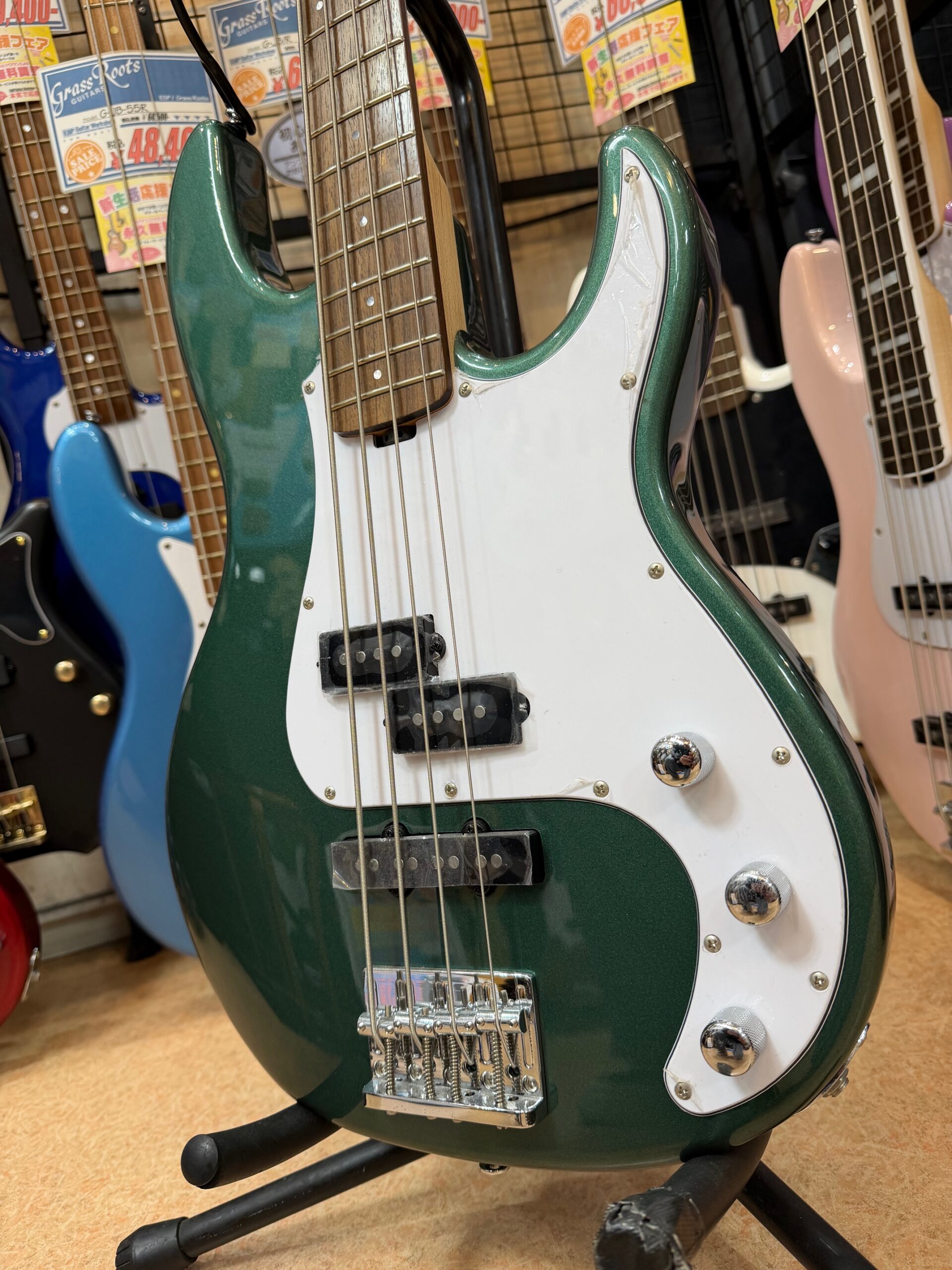 個人的にグリーンが大好きな方にこそ手にしてほしい一本。エントリークラスのベース市場では意外と少ない“緑色”を採用しており、ステージでもしっかりと存在感を放ちます。