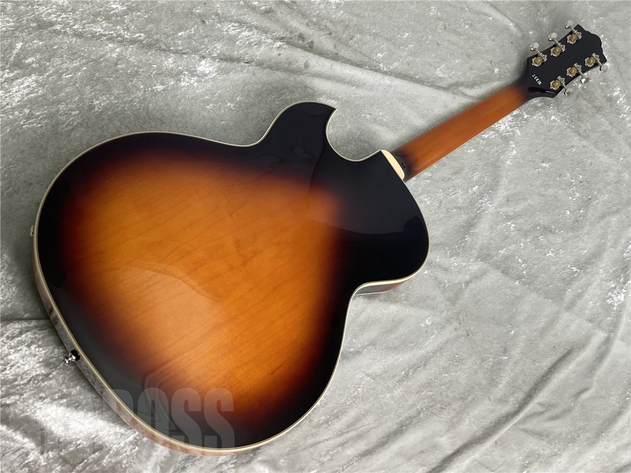 頑丈なアーチトメイプル・トップ、バック、サイドは、ホロウ・ボディ特有の空気感のあるトーンで、明るい倍音とはっきりとした低音を持っています。