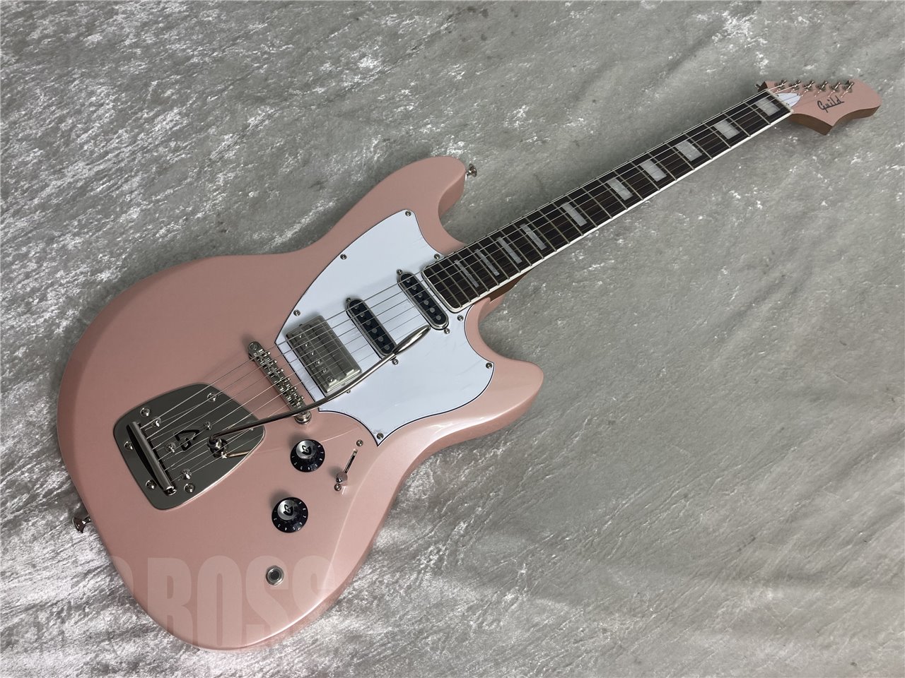本モデルのために新たに開発された「Guild Floating Vibrato Tailpiece(GFVT)」は、ゆったりとした心地よいビブラートエフェクトを実現。ナイロン製のインサートとアクセスしやすい位置にテンションスクリューを搭載し、バーテンションの自在なコントロールが可能。ヴィンテージな外観を演出するギルドのDNAを受け継ぐ「G」のエンボス加工が施されています。