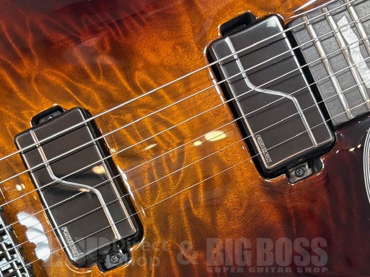 ピックアップにはアクティブタイプのFishman Fluence Modernセットで、ボディへダイレクトマウントで搭載しています。マスタートーン部のポットがスイッチポットになっており、ノブを引き上げる事でピックアップの音色を切り替える事が可能です。