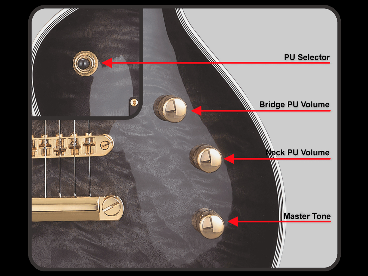CONTROL : Bridge Volume, Neck Volume, Master Tone, Toggle PU Selector