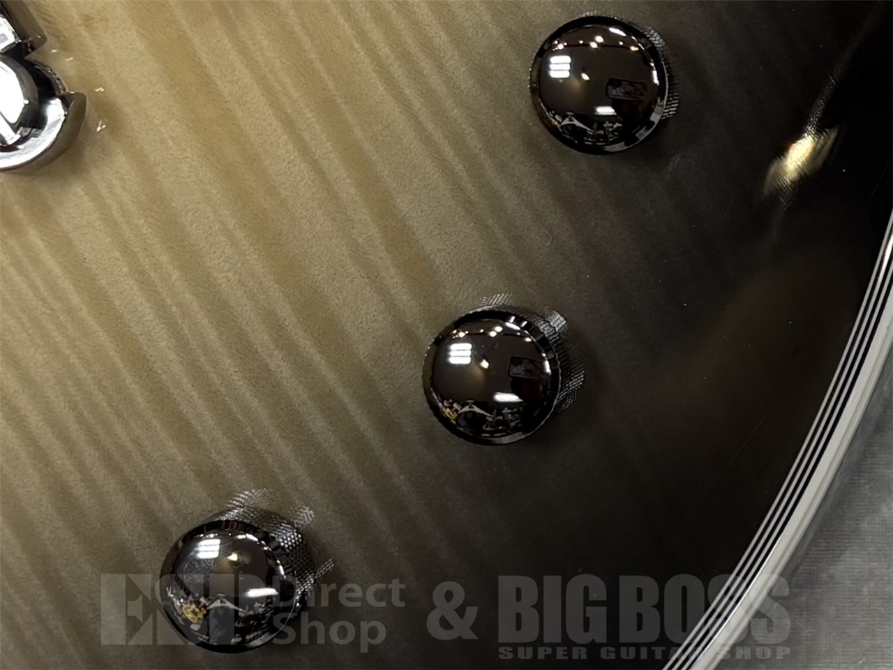 ボディはフレイムメイプルトップ、マホガニーバックのラミネート構造で、一番厚い所で55mmありEC中最も厚いボディ厚を持ちます。ネックはマホガニー、指板はエボニーです。ネックはセットネック方式でボディにジョイントされています。