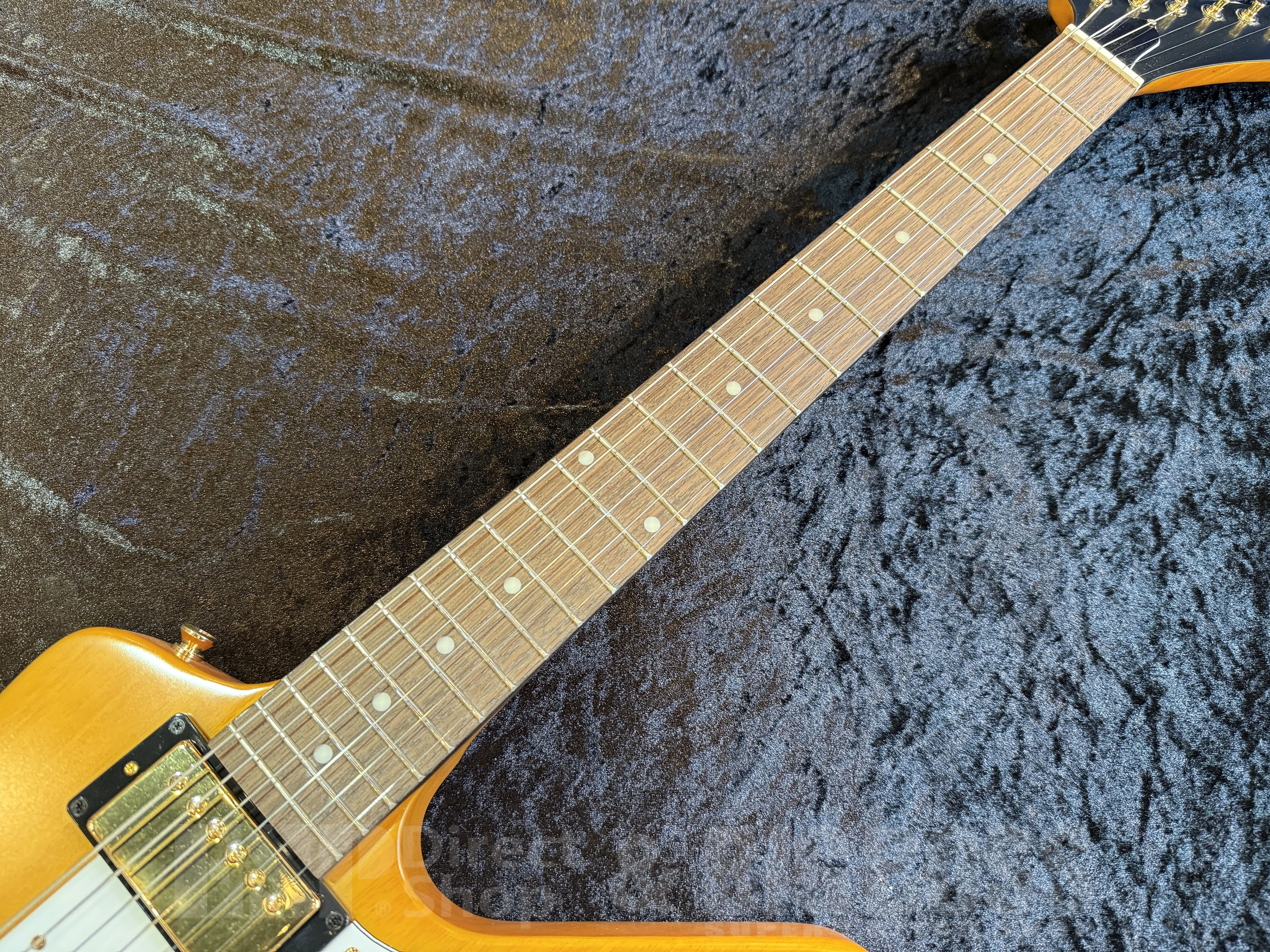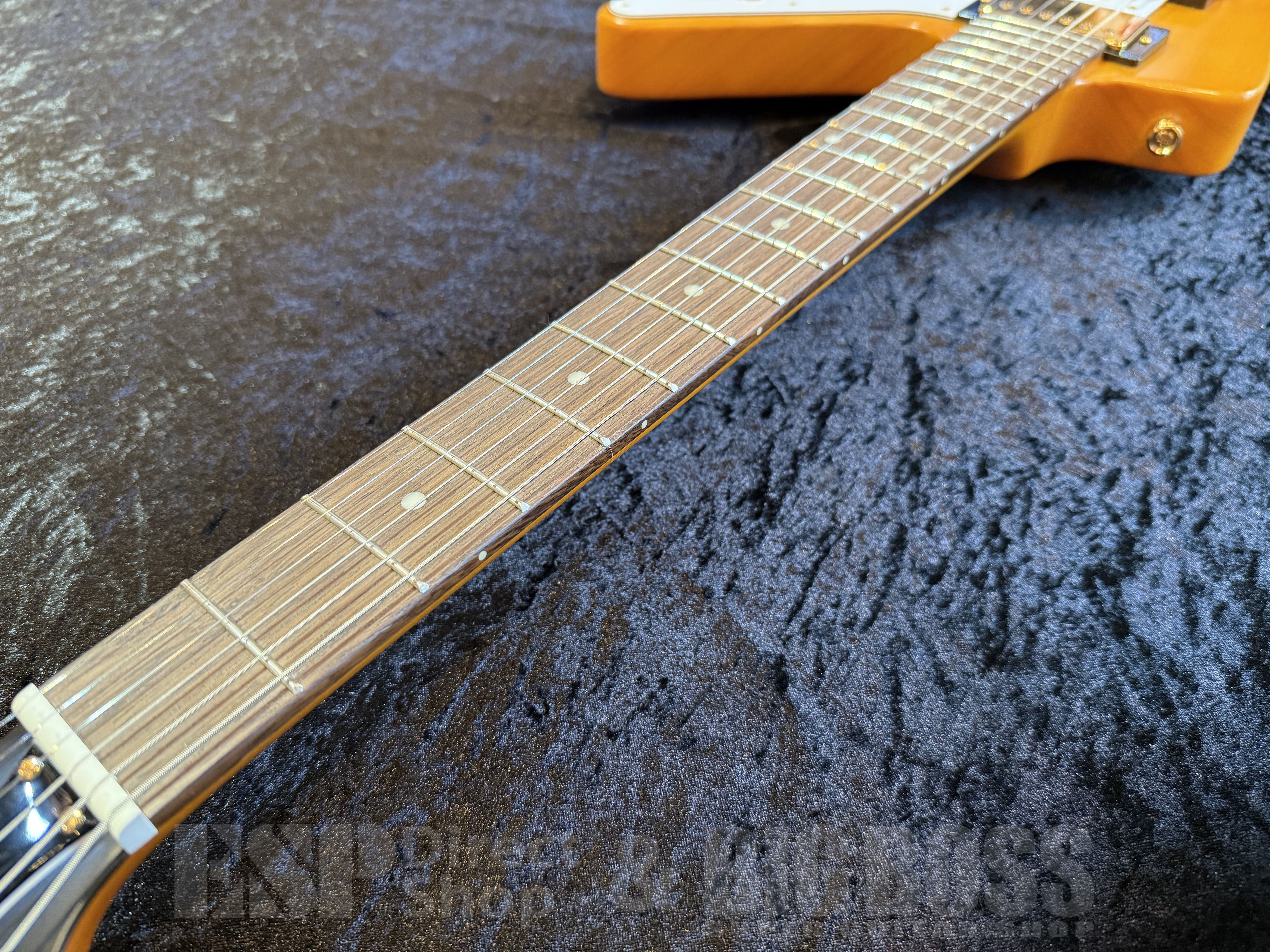 また指板はインディアン・ローレル材、ハードウェアにはゴールドパーツが採用されています。
