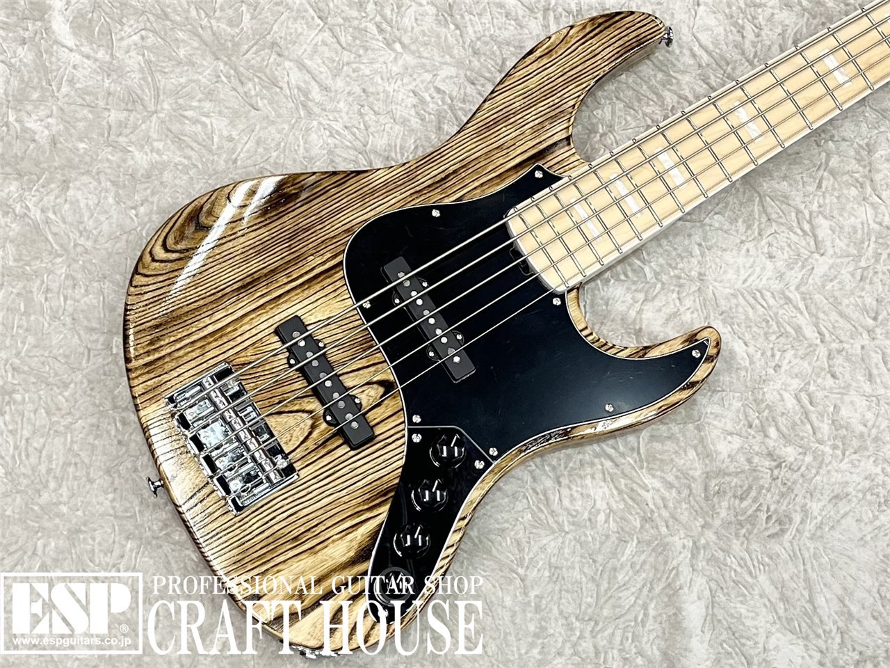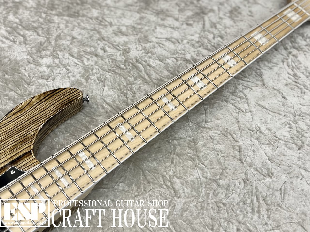 アッシュボディにハードメイプルネック&指板と、基本的な材料構成はESP AMAZE-ASと同じですが、スケールは4弦と同じ864mmを採用し、さらに使用パーツなどを変更してより多機能なベースになりました。