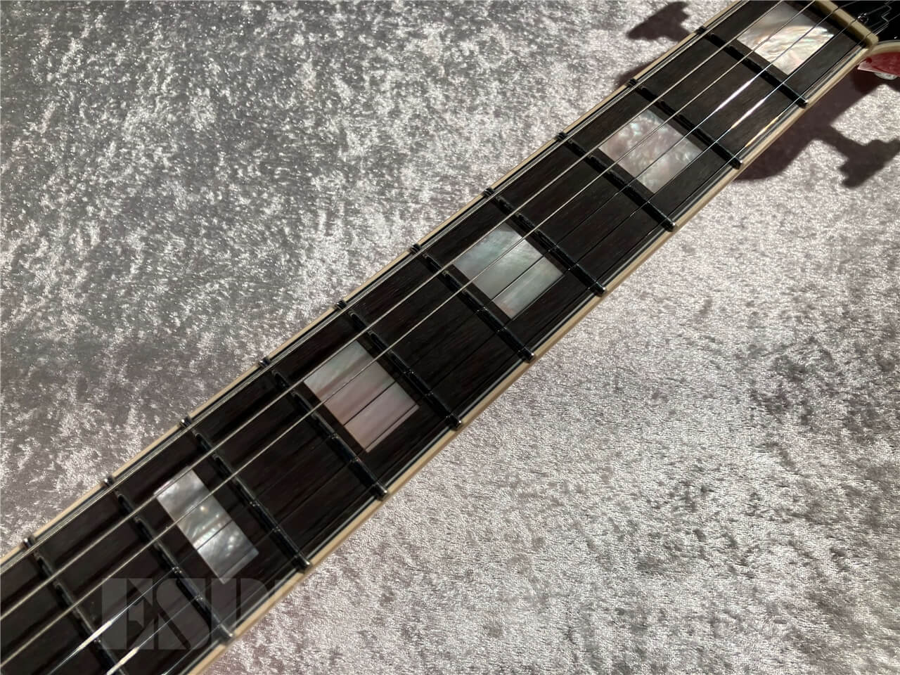 ボディー・トップ、ヘッドストックとネックにはバインディングが装飾され、ホワイト・パーロイド・ブロック・ポジションマーカーと組み合わせたデザインです。