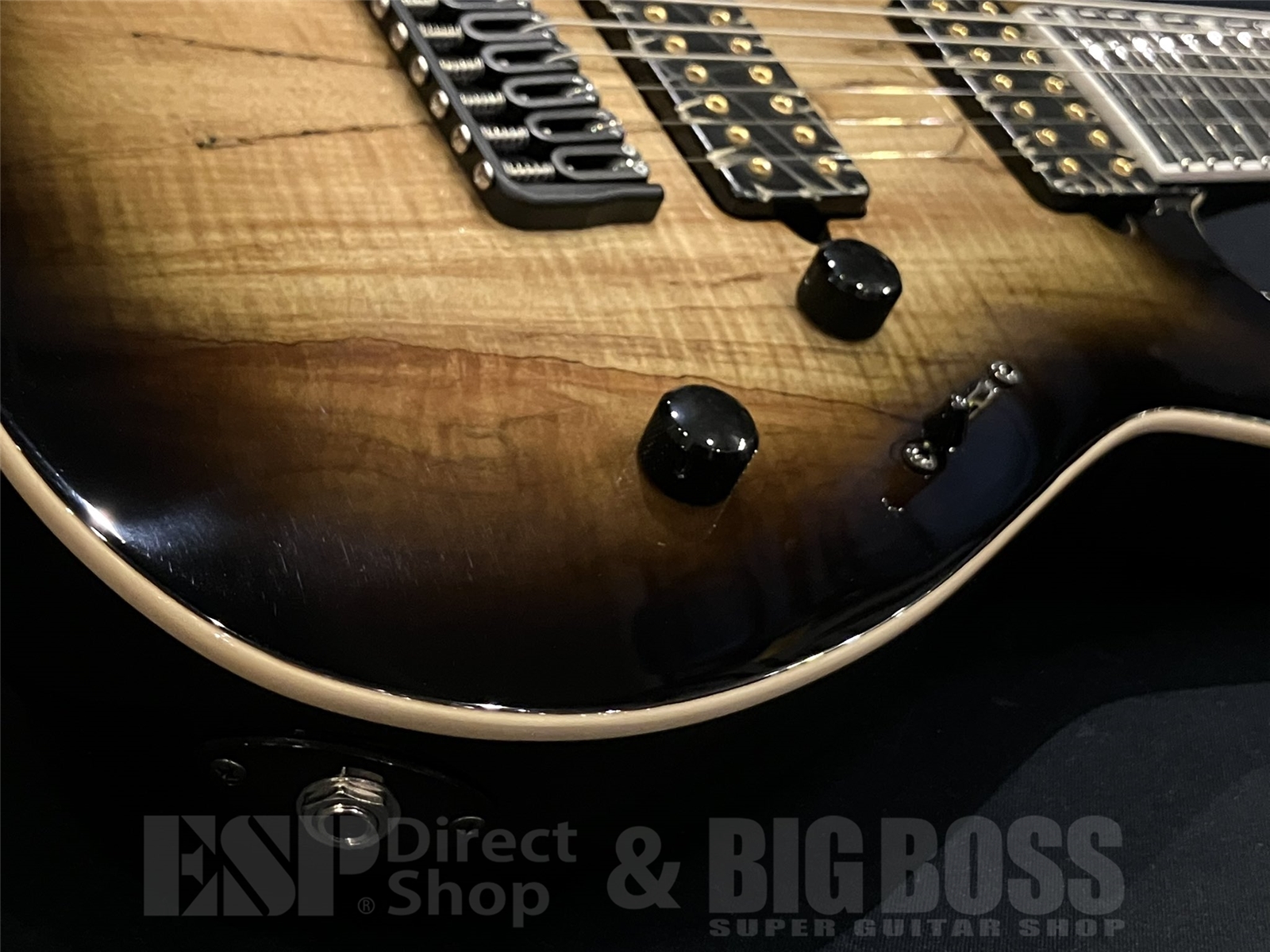 ボディはスポルテッドメイプルトップ、マホガニーバックのラミネート構造。