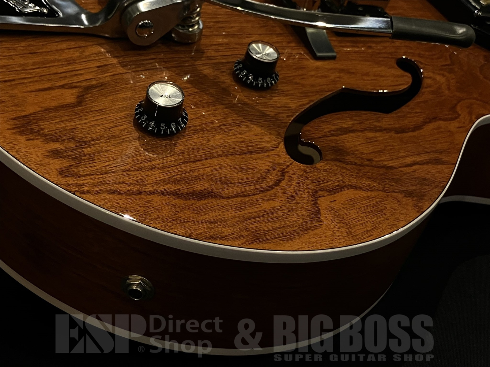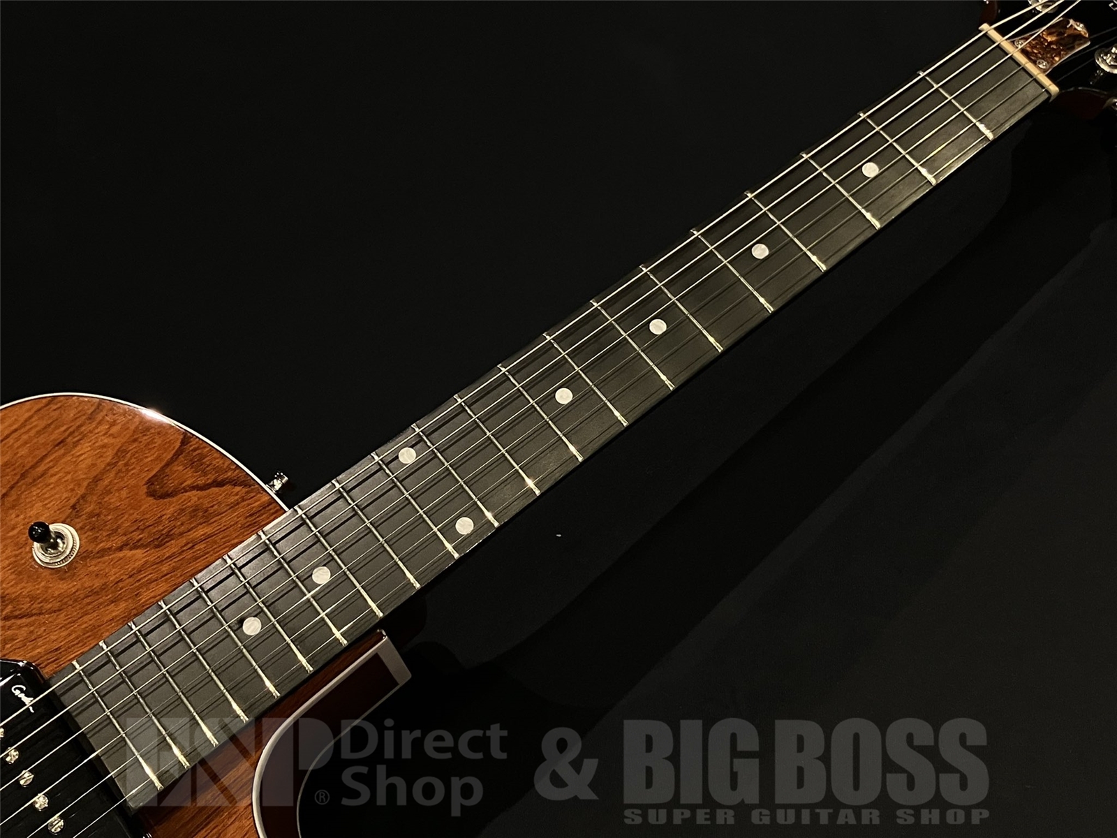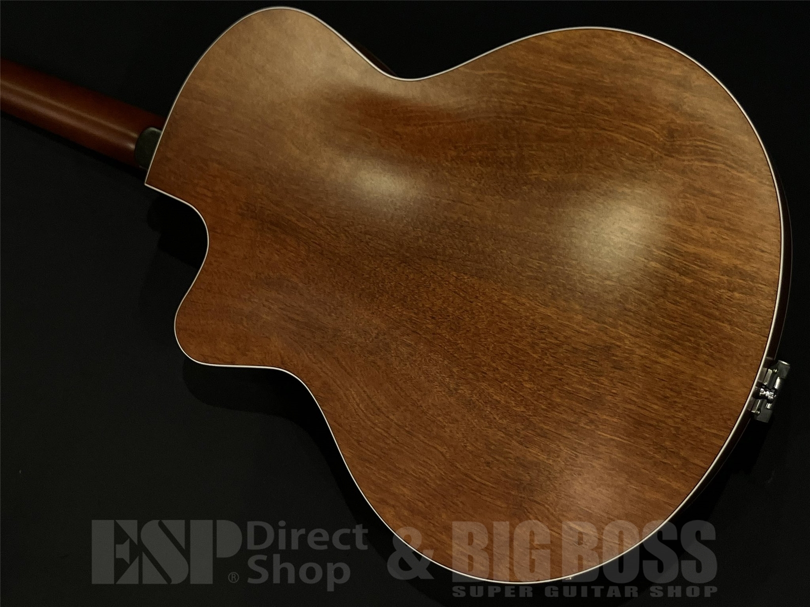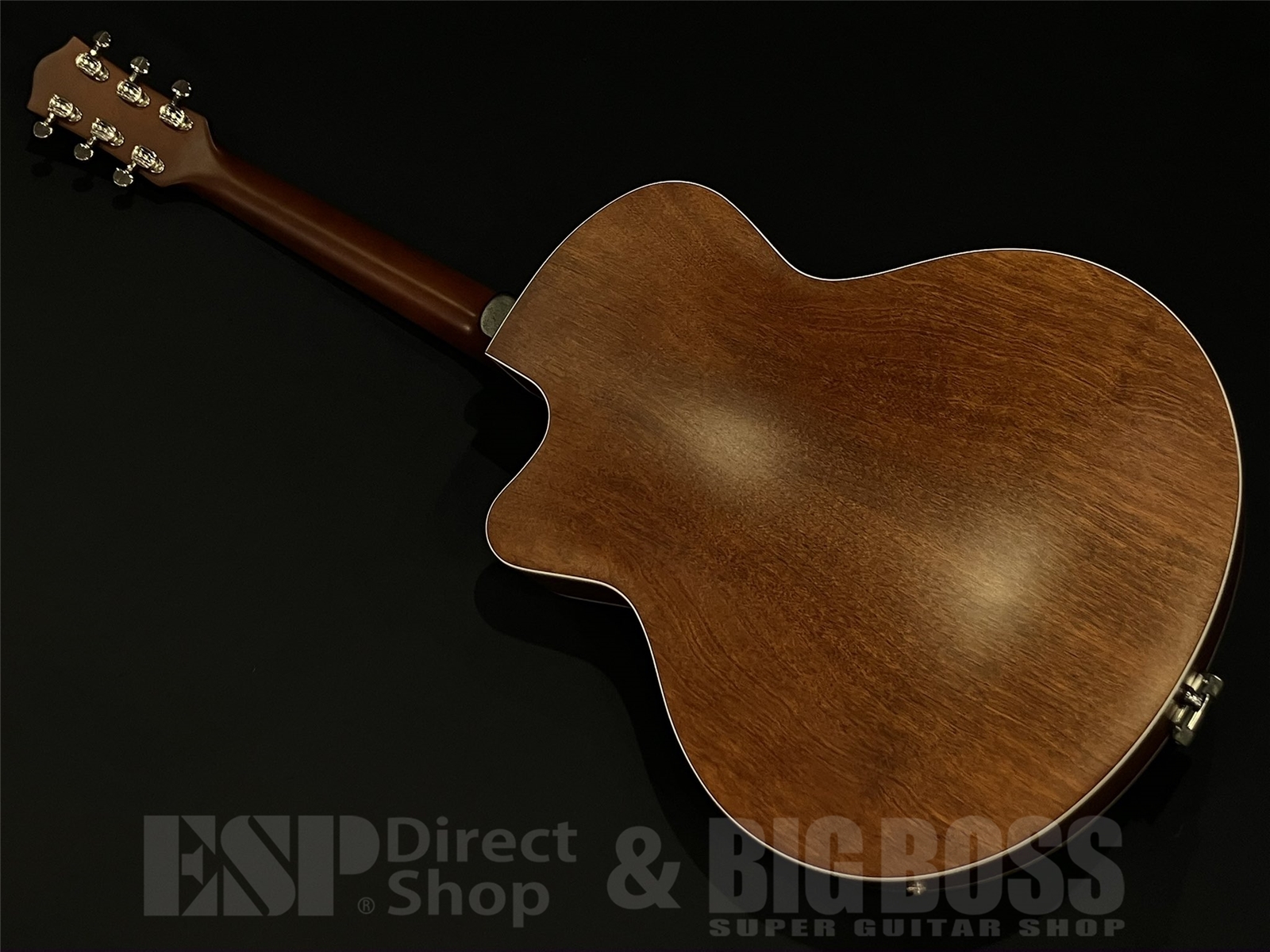カナディアンワイルドチェリーボディとシルバーリーフメイプルネックの組み合わせが、伝統的なアーチトップギター以上の低・中音域とダイナミックなトーンを実現します。