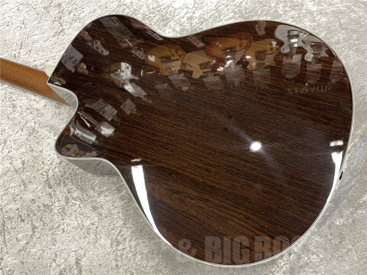 『R-14G』は、ソロ・ギター向けのギターでその品質の高さを証明してきたモーリスが放つ、ステージパフォーマンスに最適なエレアコ。