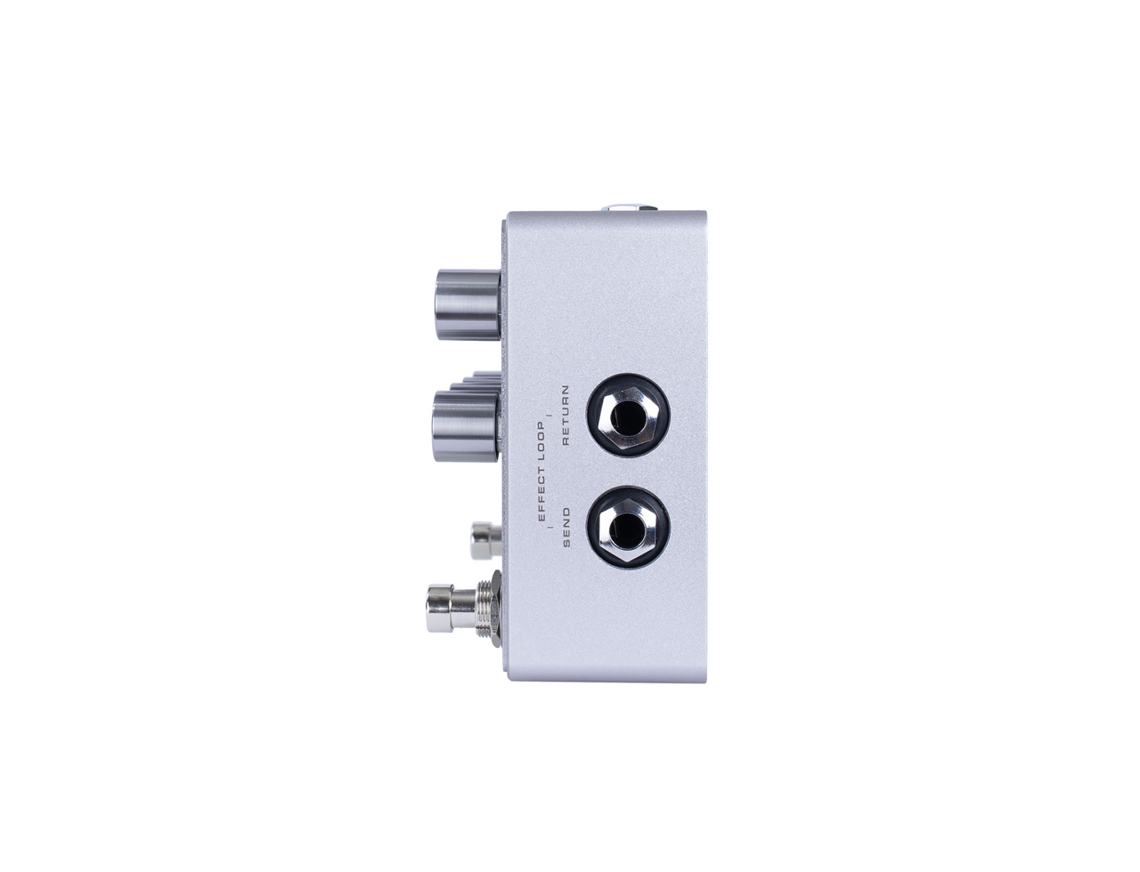 Blend : ドライブのブレンド具合を調整します。ノブを押すとエフェクト・ ループのポジションを選択できます。 エフェクト・ループは、シグナル・チェーンの中で 3 つの異なる位置に 設定できます。