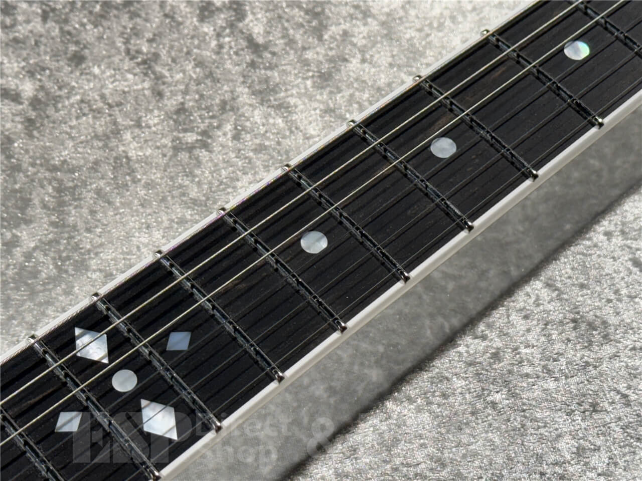 635mmのスケールで、セット・ネック・ジョイント、ミディアム・サイズの24フレット仕様です。