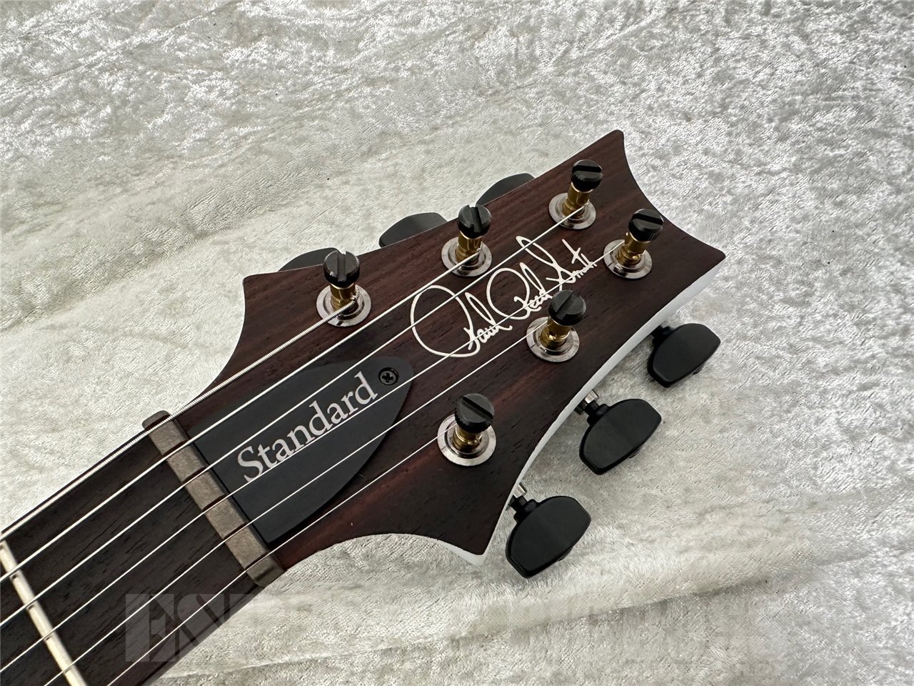PRS Standardは、ポール・リード・スミスがプリファクトリー期に制作した、オール・マホガニーのギターをベースとしたモデルです。オール・マホガニーの仕様による、ウォームな中音域が際立つトーンはこのモデルの大きな特徴のひとつです。そして極薄のラッカー・サテン・フィニッシュが質実剛健さが際立つ美しさをもたらします。
