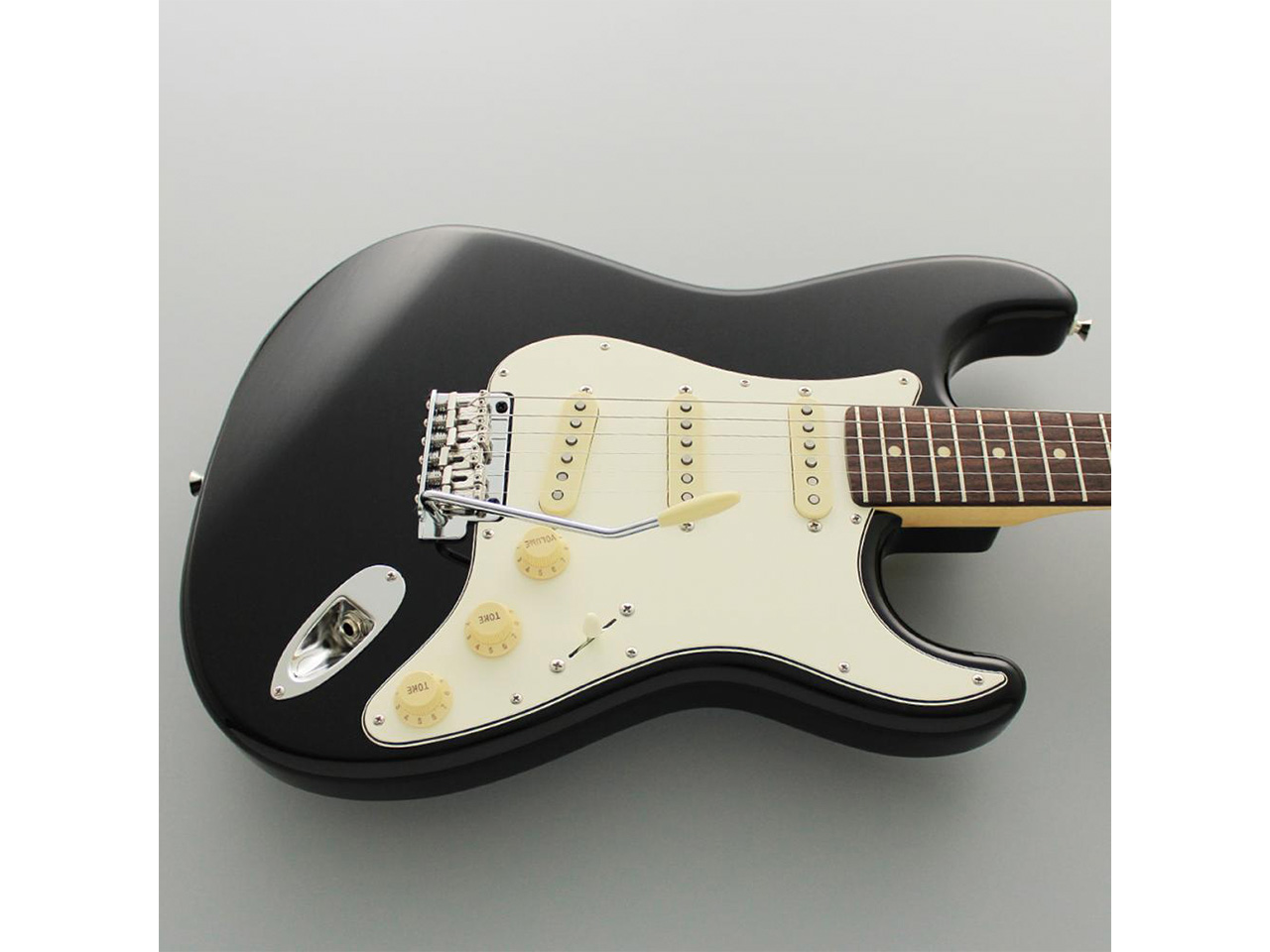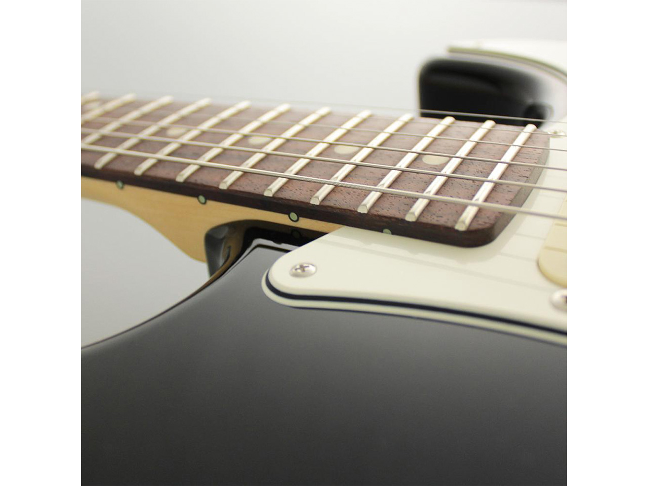 当モデルは、アルダーボディ、ローズウッド指板、3S配列、ブラックカラーという組み合わせ。