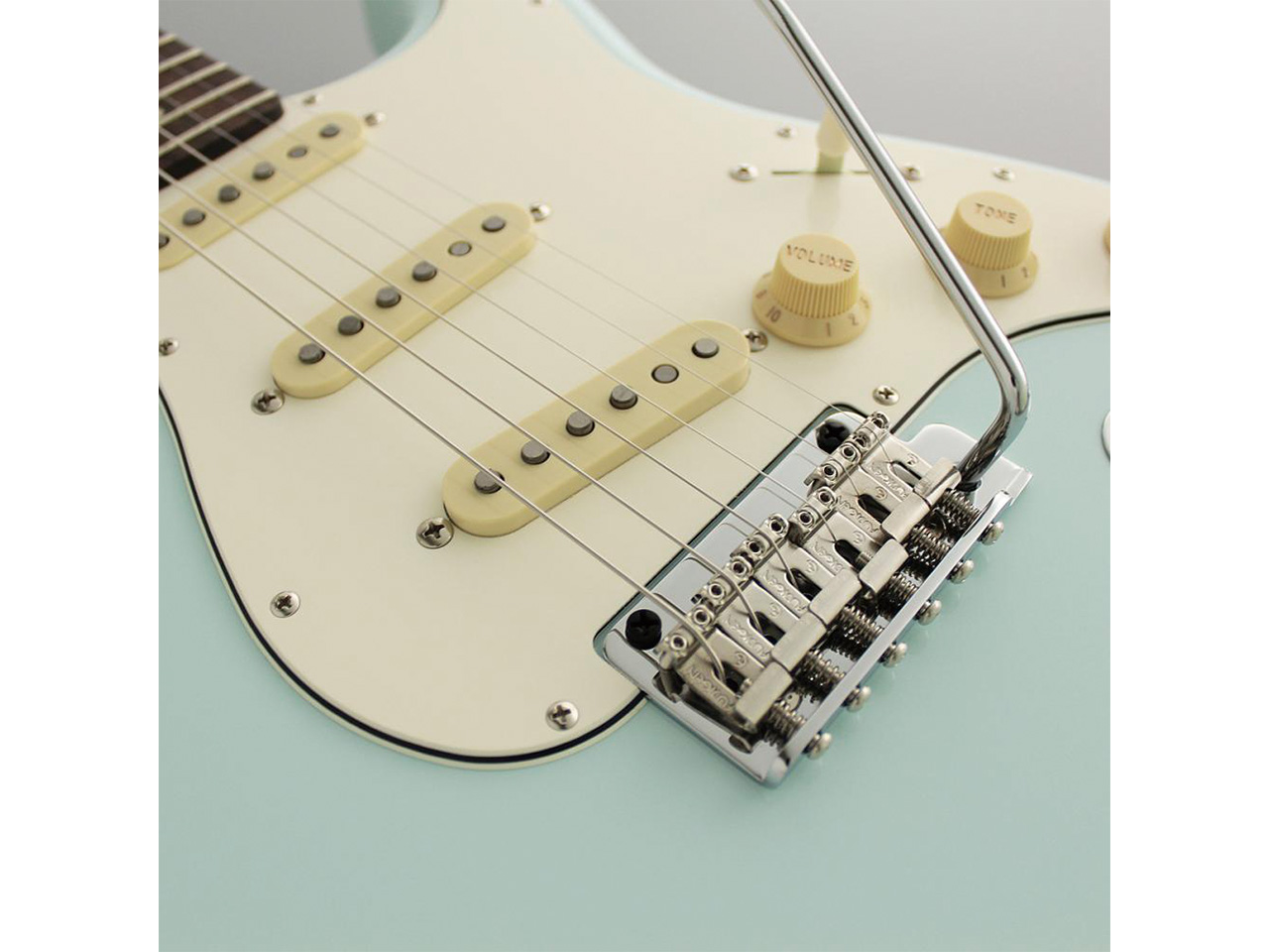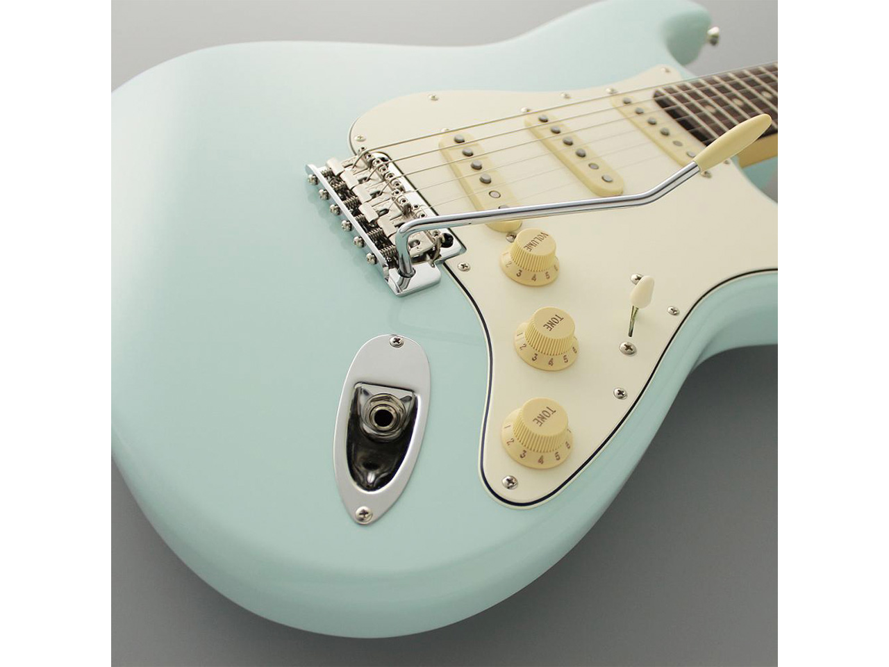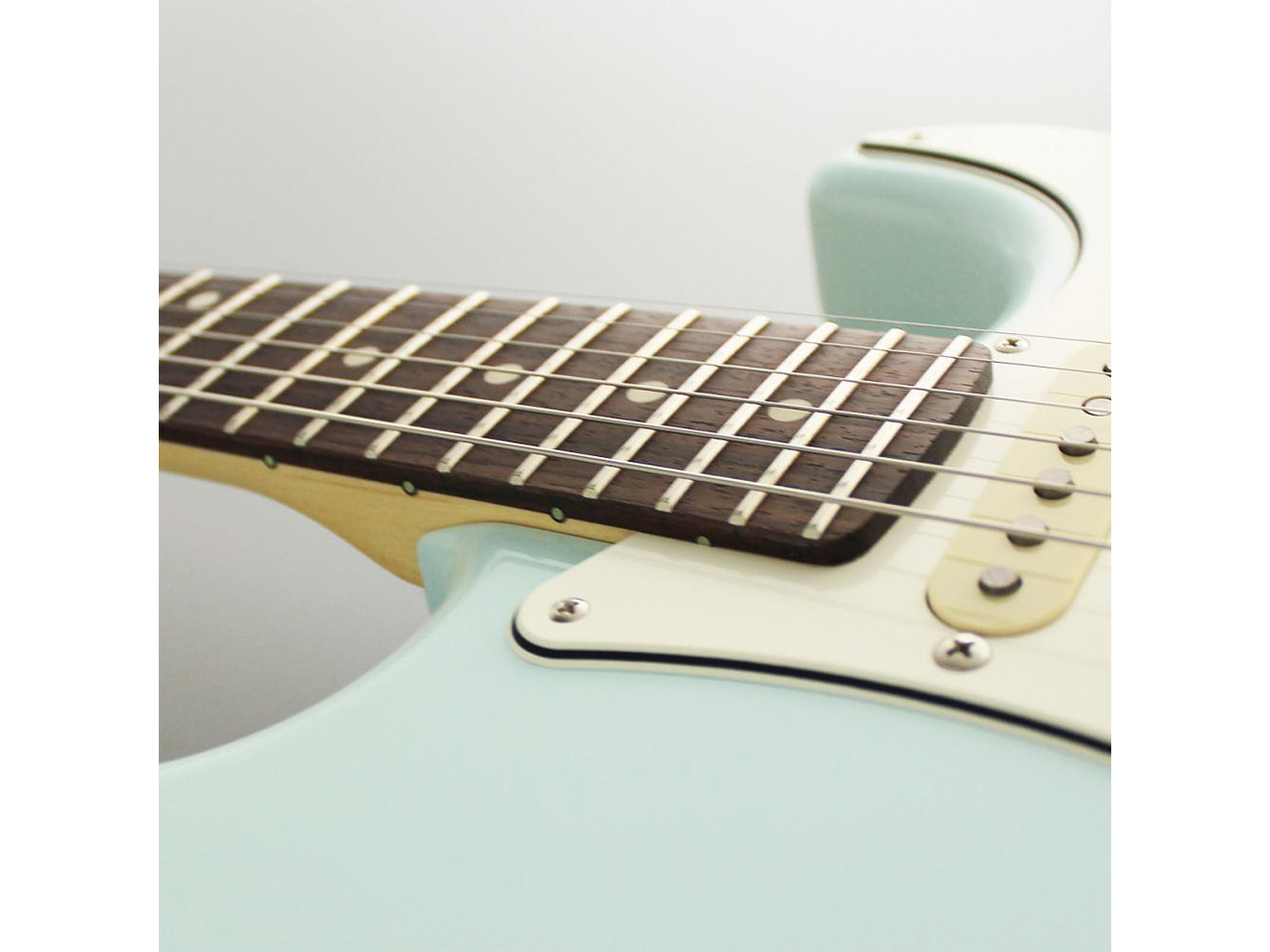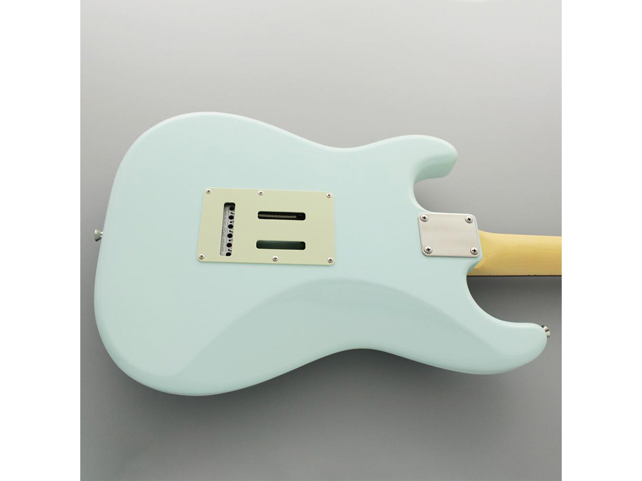 当モデルは、アルダーボディ、ローズウッド指板、3S配列、ペイルソニックブルーカラーという組み合わせ。