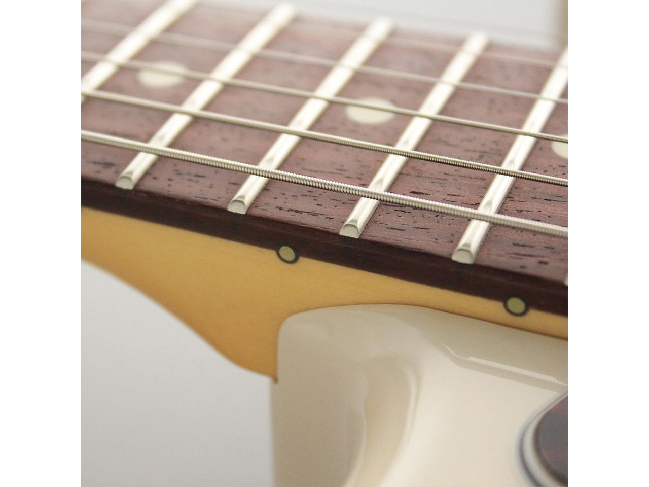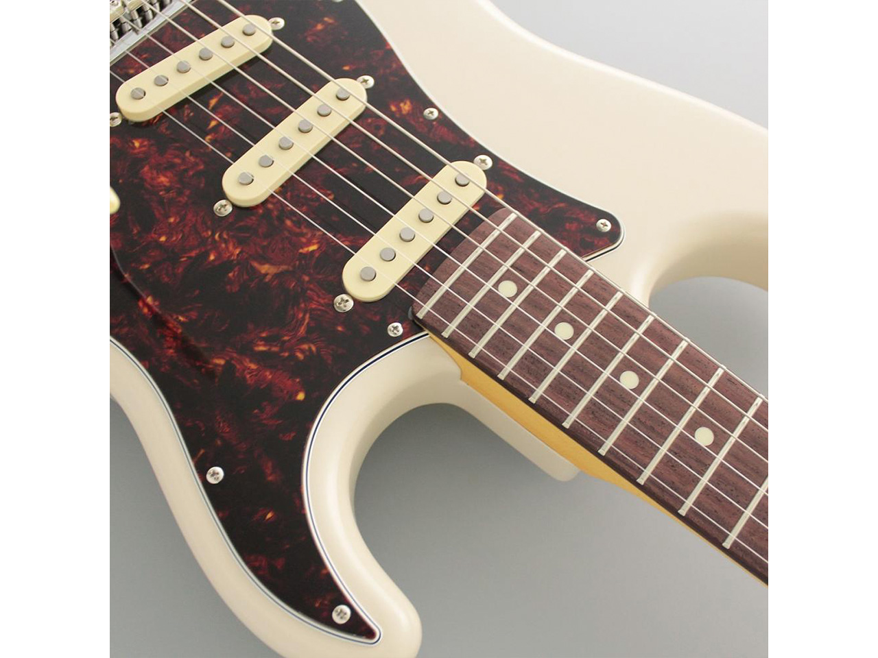 当モデルは、アルダーボディ、ローズウッド指板、3S配列、ヴィンテージホワイトカラーという定番の組み合わせ。