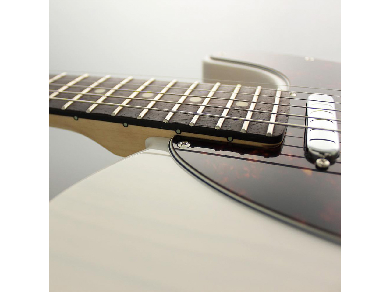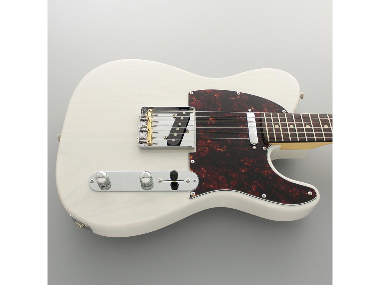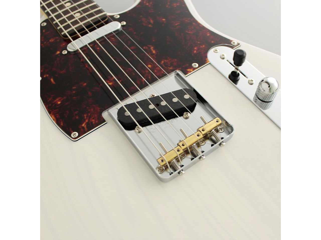 当モデルは、アッシュボディ、ローズウッド指板、ホワイトブロンドカラーという組み合わせ。