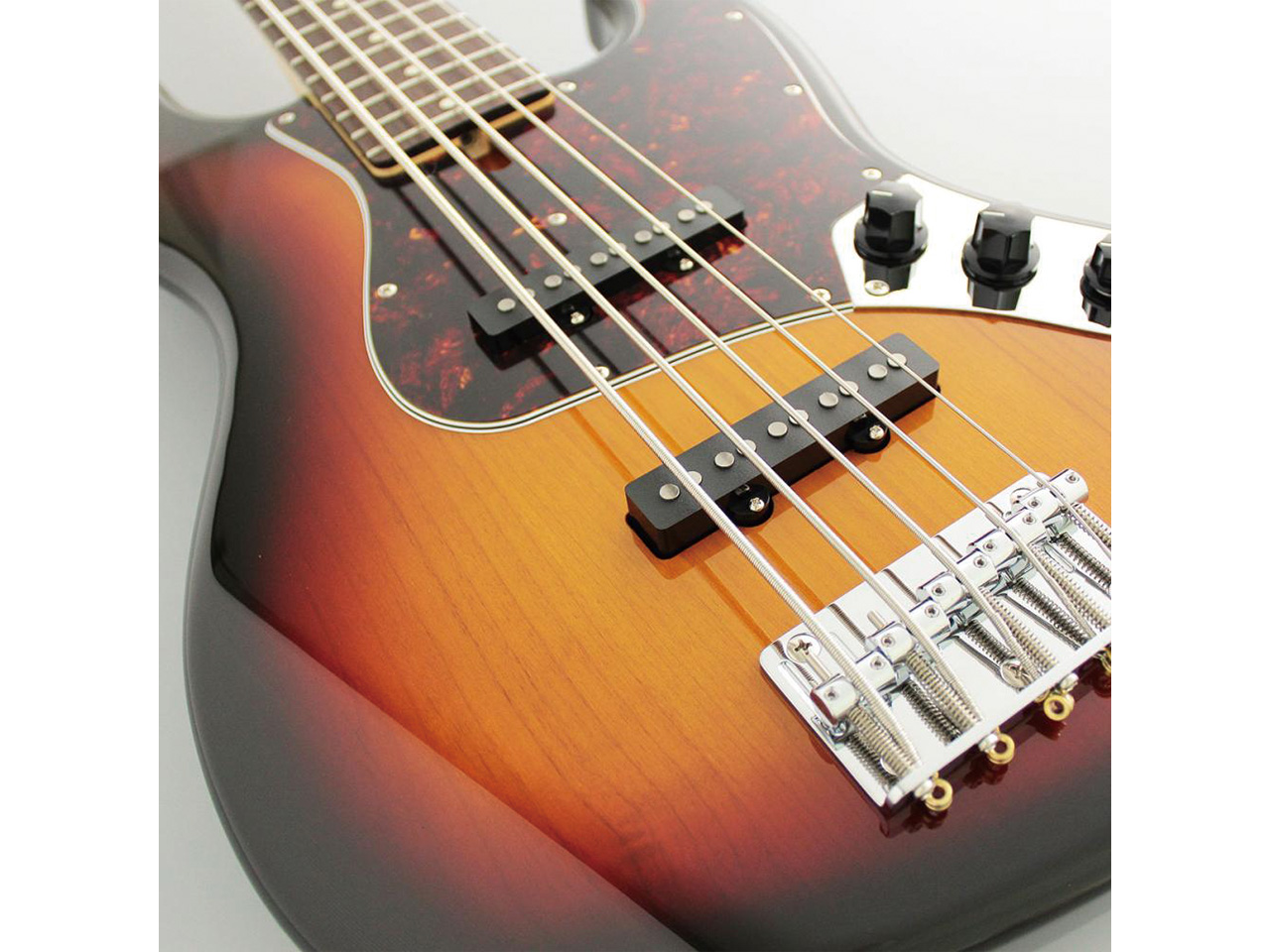 当モデルは、アルダーボディ、ローズウッド指板、ド定番3トーンサンバーストカラーという組み合わせの5弦ベース。
