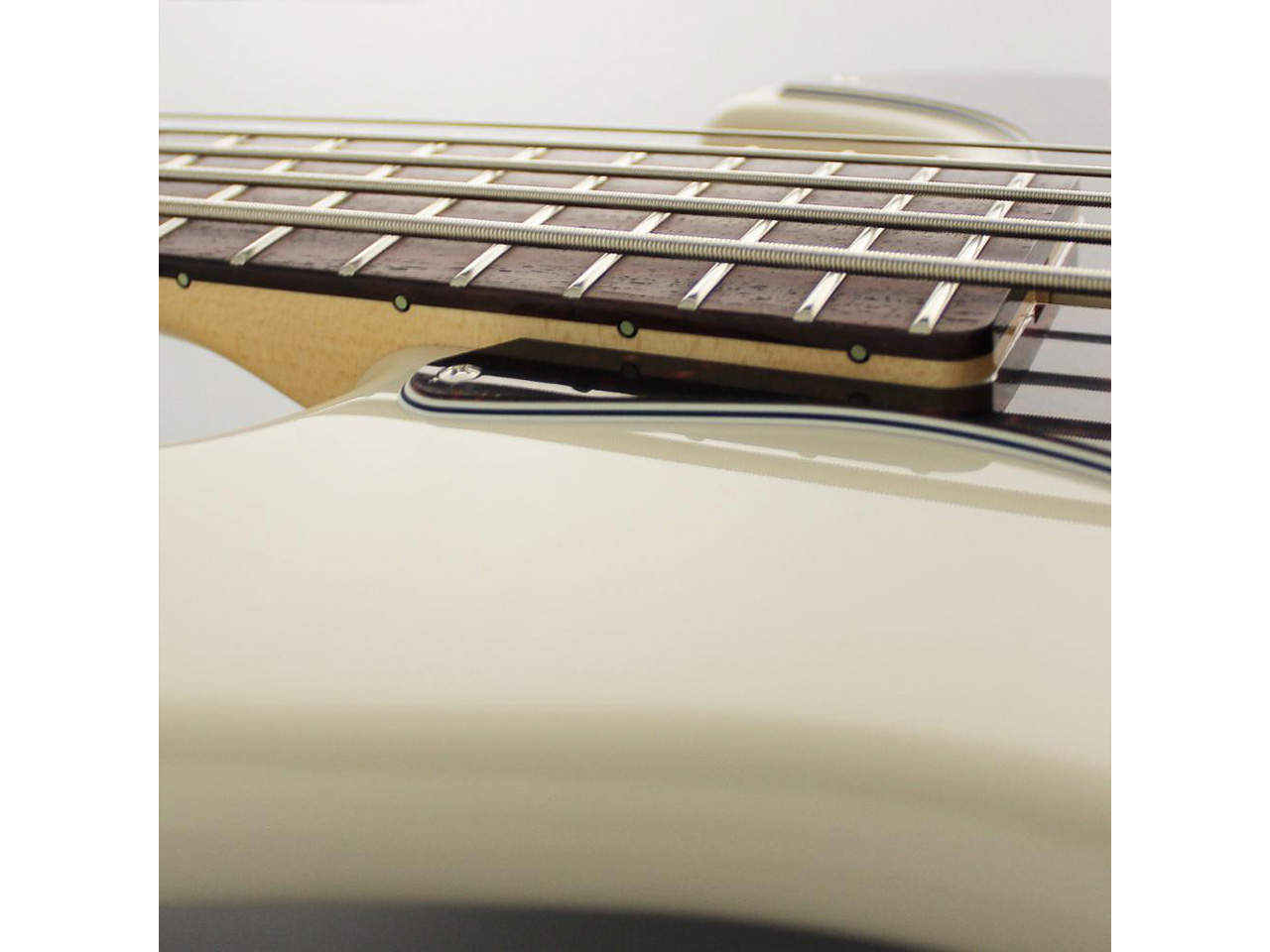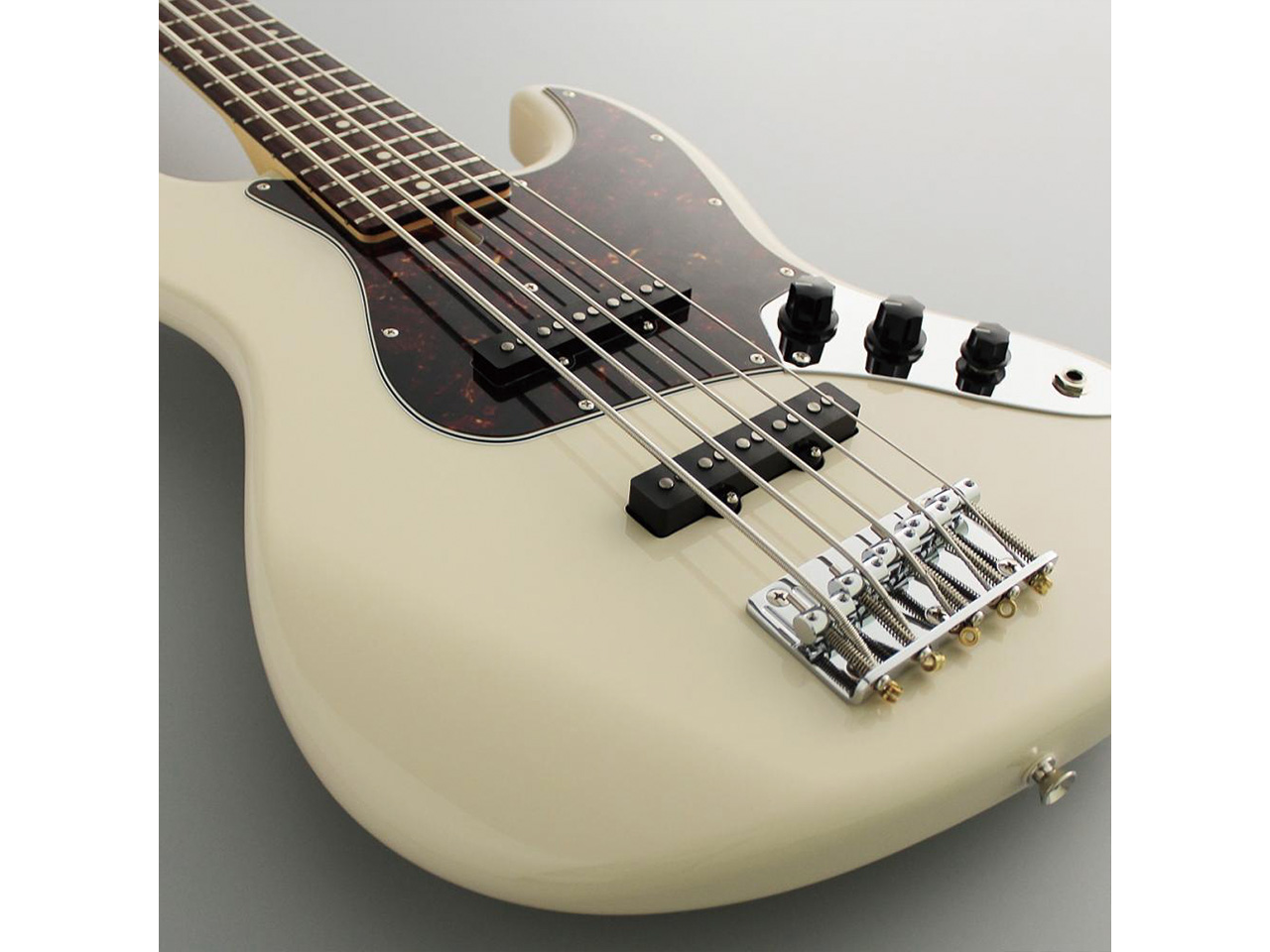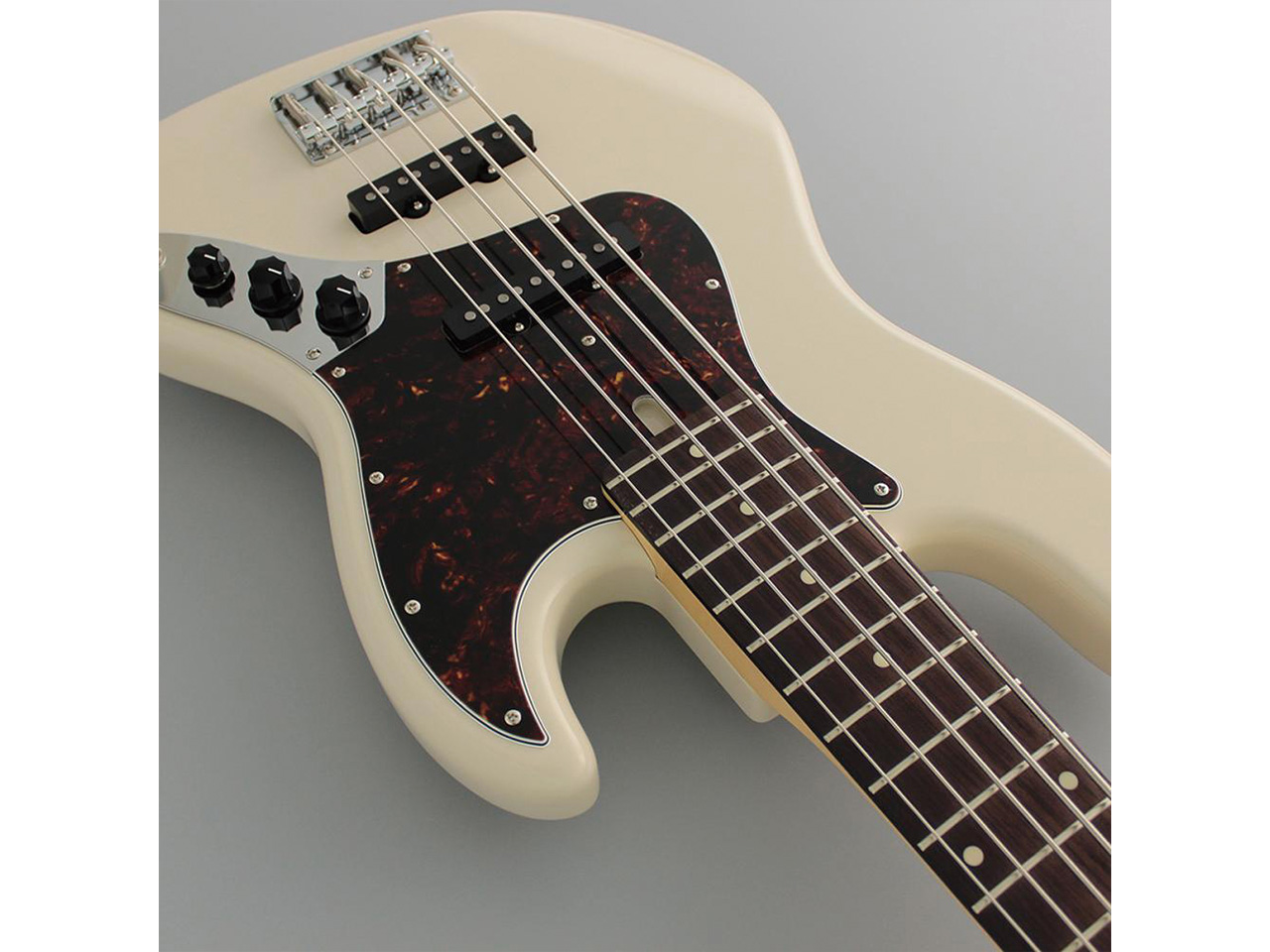 当モデルは、アルダーボディ、ローズウッド指板、ヴィンテージホワイトカラーという組み合わせの5弦ベース。