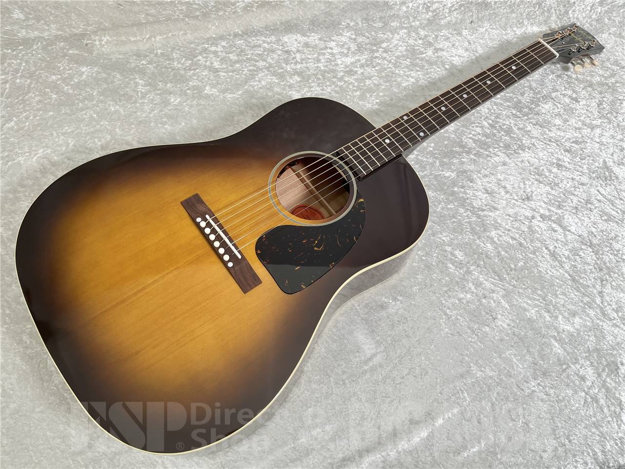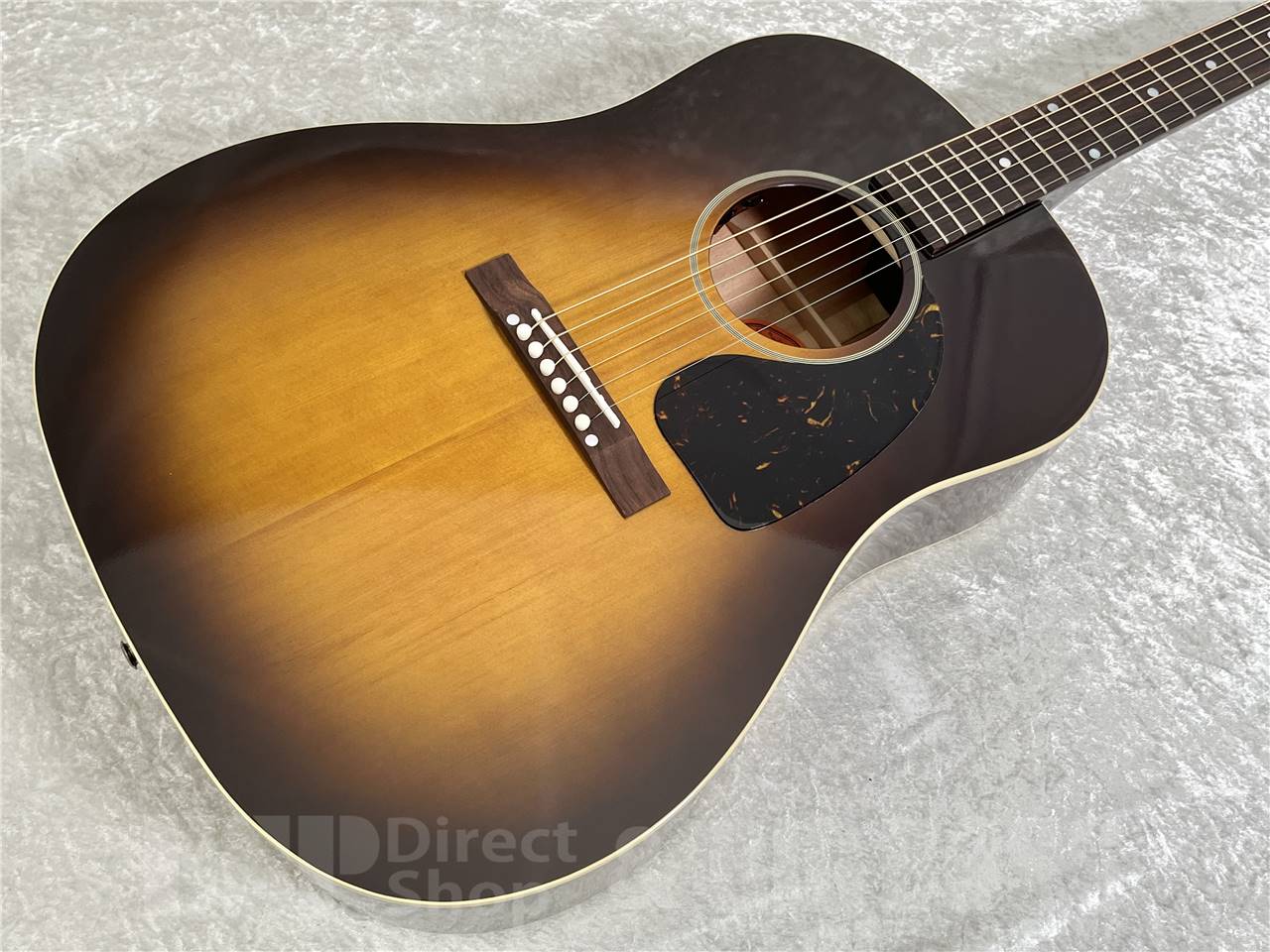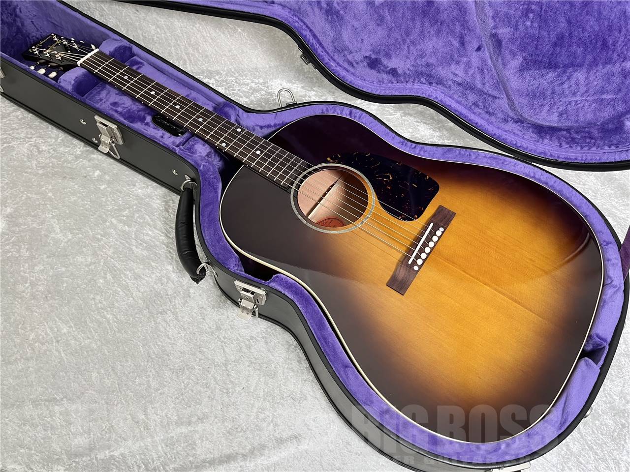 トップとバックにシングルプライ・バインディングが施されたボディは、グロス・フィニッシュの光沢を若干抑えた “ニューヴィンテージ・グロス“ 仕上げを採用。 僅かに退色したカラーを再現した“ウォッシュド・ヴィンテージ・サンバースト“との組み合わせにより、 ヴィンテージの質感溢れるルックスになっています。ピックガードは、べっ甲色のクラシックなティアドロップ・シェイプで、J-45のルックスを引きたてます。さらに、サウンドホール周りのパーフリングは奥田民生氏愛用のJ-45と同じ7層になっており、細部にわたりギブソンのオリジナルに近づけた拘り抜いた出来栄えとなっています。