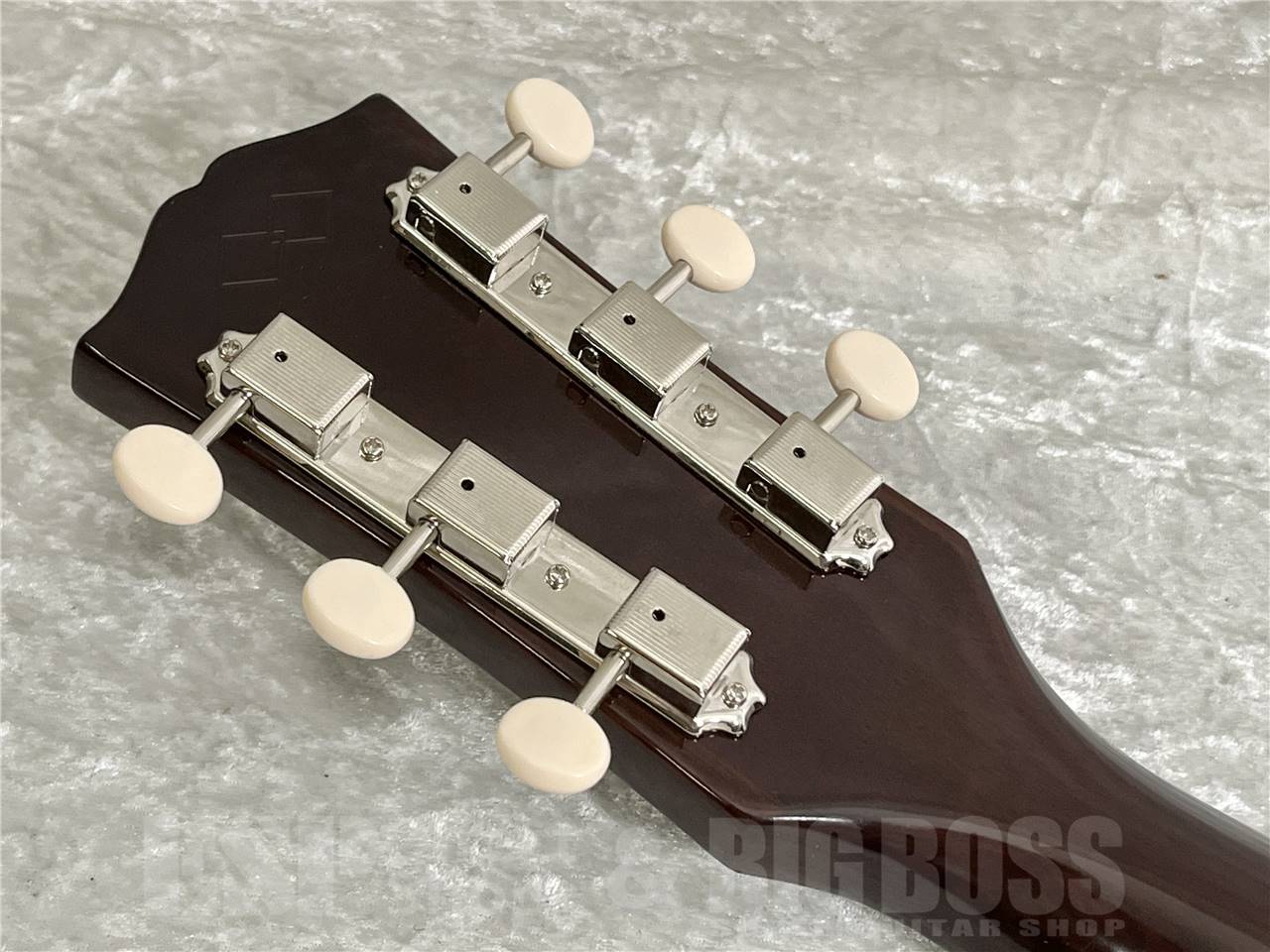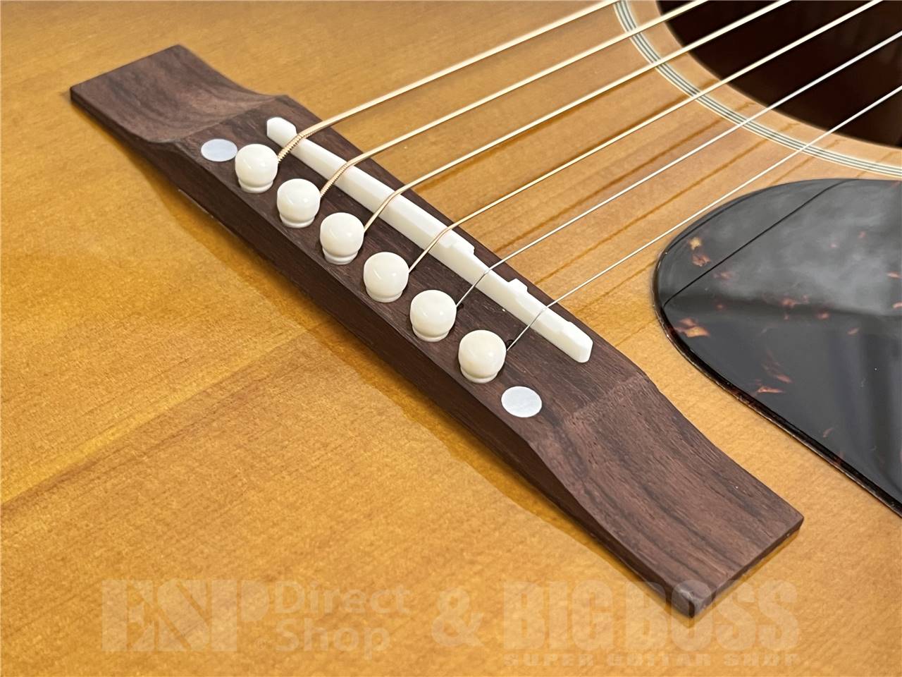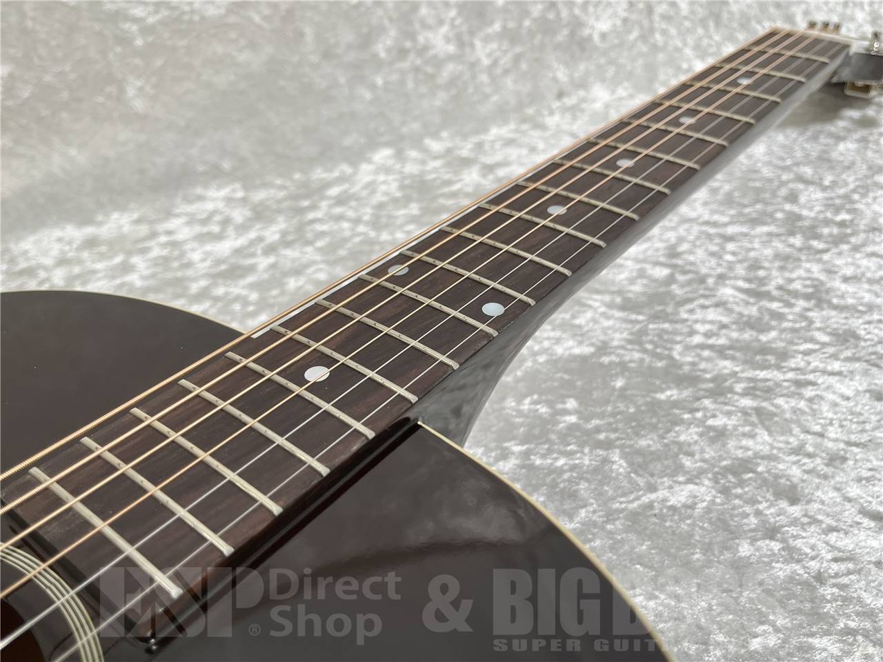 その他、ミディアム・フレットによる19フレット仕様のローズウッド指板には、マザー・オブ・パールのドット・ポジションマーク・インレイがあしらわれ、ローズウッドのレクタンギュラー・ブリッジ上のサドル、ナットとブリッジ・ピンには、それぞれボーン材を使用しています。