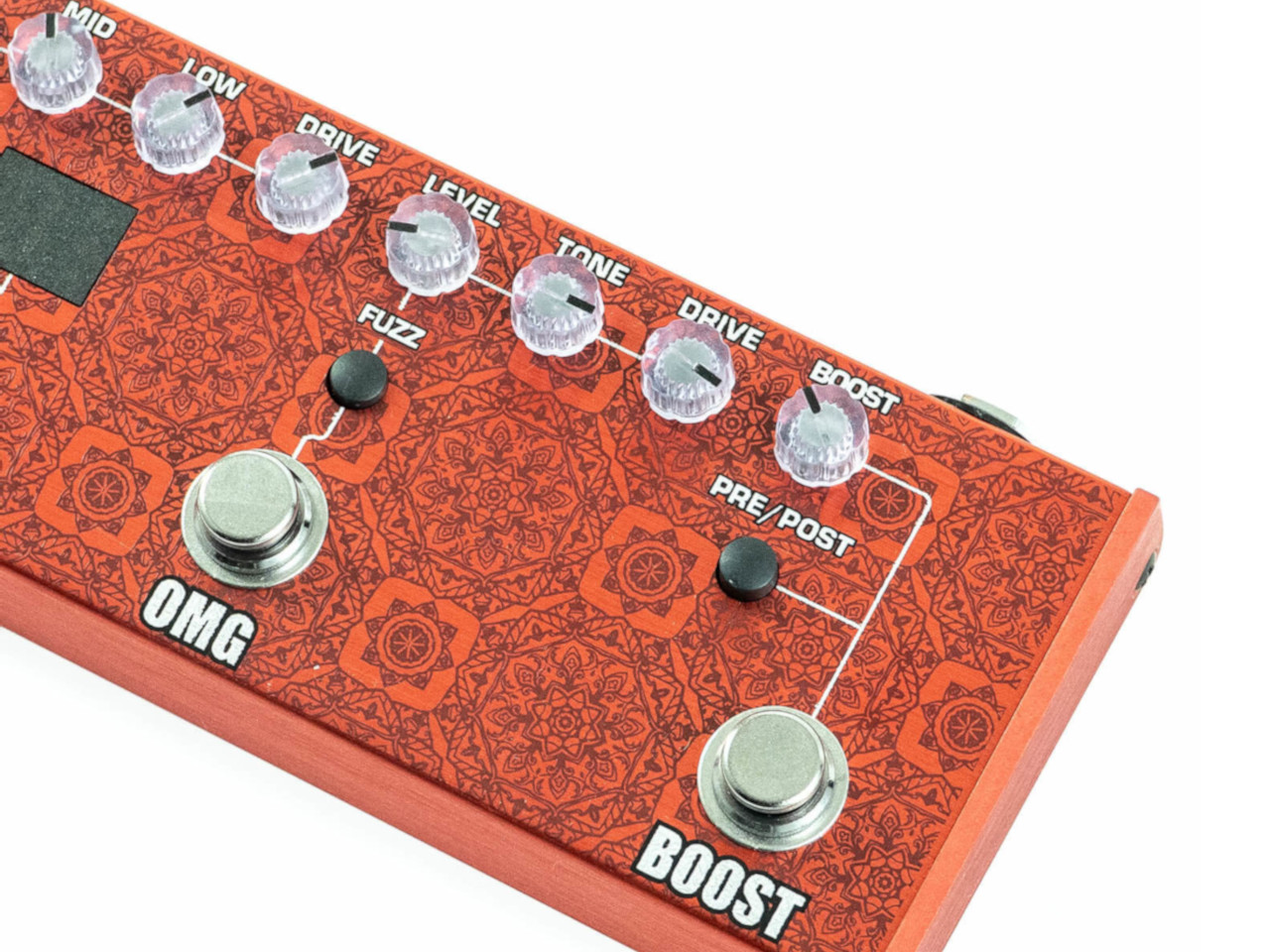 3バンドのアクティブEQ、LevelとDriveコントロールが搭載、他にもDriveコントロール、Boost機能、またはOMGセクションからオーバードライブを追加、あるいはその3つすべてを使うことも可能でそれぞれの方法で異なるトーンが得られます。OMGセクションはクリーンからアグレッシブまで幅広いオーバードライブを提供するRichie KotzenシグネチャーOMGペダルをベースにしています。クリーン・アンプに個性を加えることも、ダーティなアンプ・トーンにパンチを加えることも可能です。