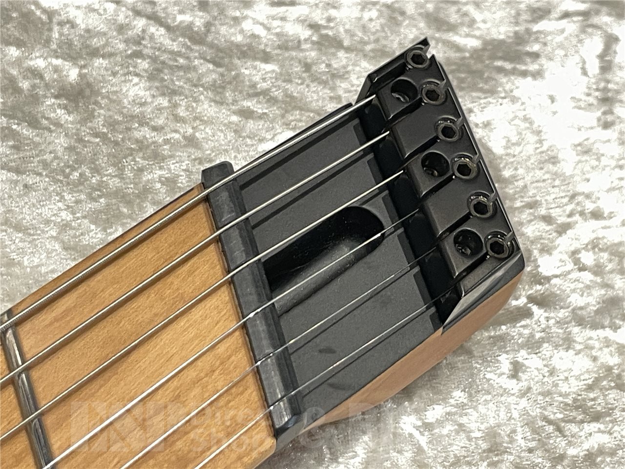 GOLIATH GTRは、ヘッドレスデザインによる重量の軽減とコンパクトなサイズが特徴です。ボディはマホガニーを使用し、グロススパークルフィニッシュで仕上げられています。ネックは焼きメイプルで作られ、ボルトオン方式で接続されており、どのフレットからでも快適なプレイが可能です。