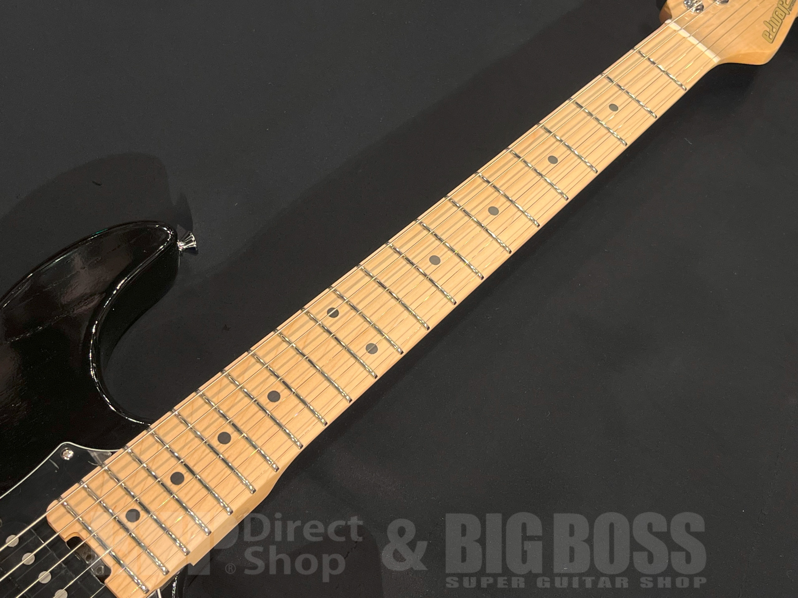 E-SNAPPER-AS/Mは、アッシュボディにハードメイプルネック&指板のモデルです。CTシステムを採用したヘッドには、ロック式ペグのGOTOH SG360-07 MG-Tを搭載。ブリッジは2点支持トレモロユニットのGOTOH 510T-FE1で、ESPカスタムラボのトレモロトーンスプリングを組み合わせています。ピックアップはブリッジポジションのハムバッカーにESP LH-200、ミドル&ネックポジションのシングルコイルにはSS-100を採用しています。ボリュームポットには絞った時に音がこもるのを防ぐハイパスコンデンサを、トーンポットはスイッチポットで、ノブを引き上げる事でネックポジションのシングルコイルを常時ONにする事が可能です。ミニスイッチはハムバッカーのコイルスプリットスイッチです。