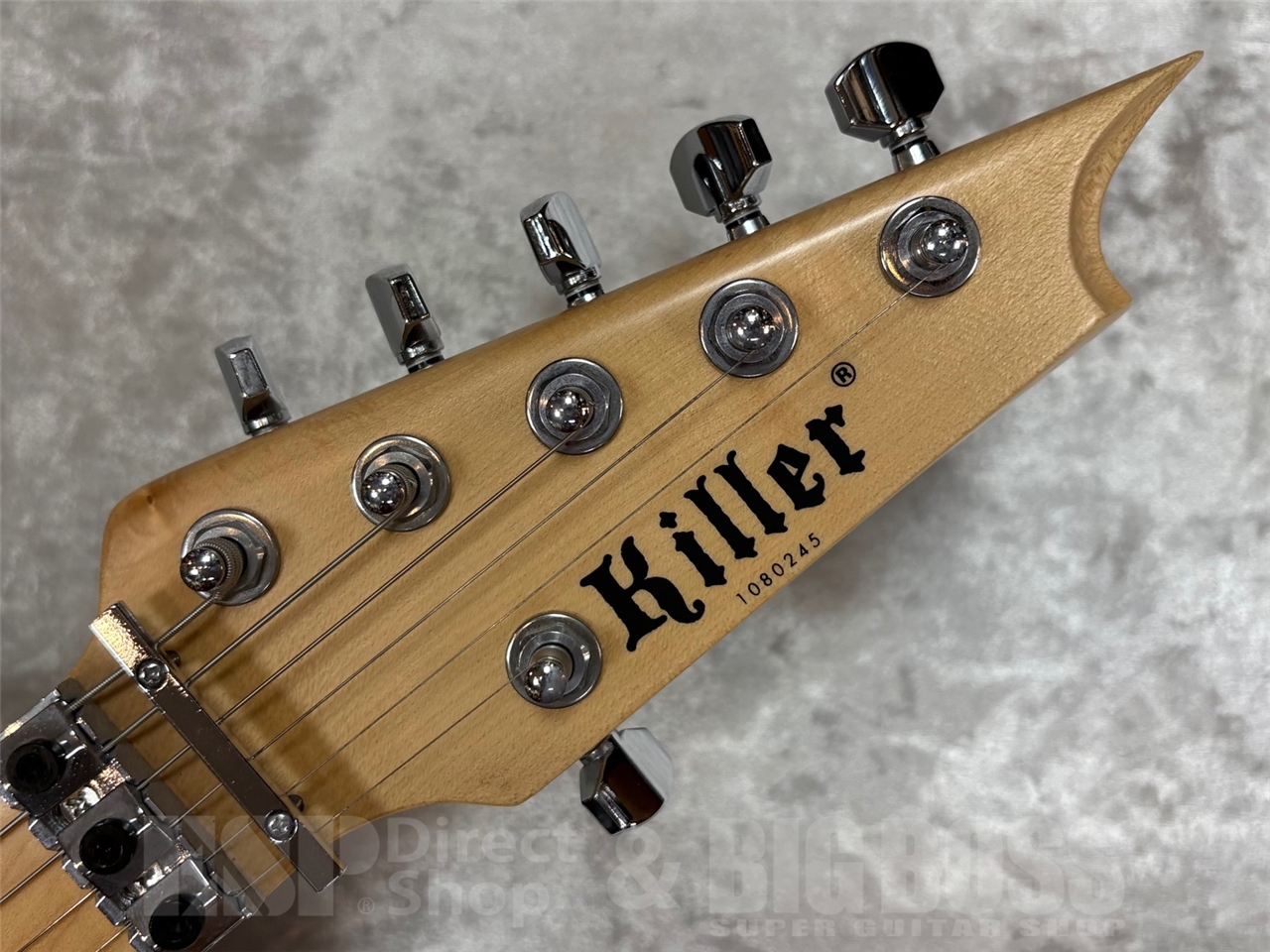 ・ピックアップはKillerオリジナルのLQ-500とLZ-510 Dyna-Biteです。ブリッジはFloyd Rose Thousandを搭載。アームアップが出来る様に落とし込んであります。フローティング・セッティングです。