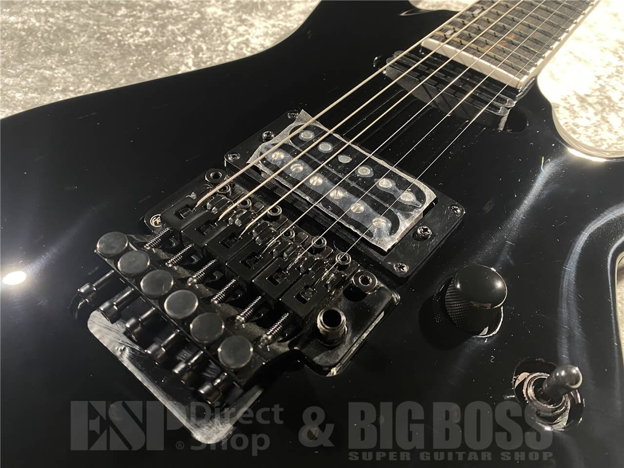 ブリッジはロック式トレモロのフロイドローズ・スペシャルを搭載しており、可変幅の広いアーミングも可能です。