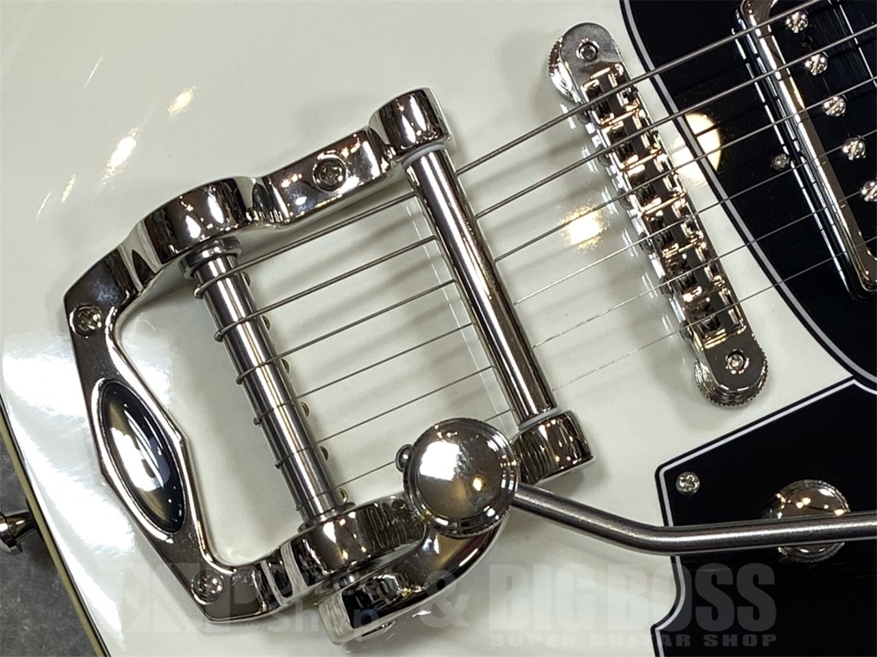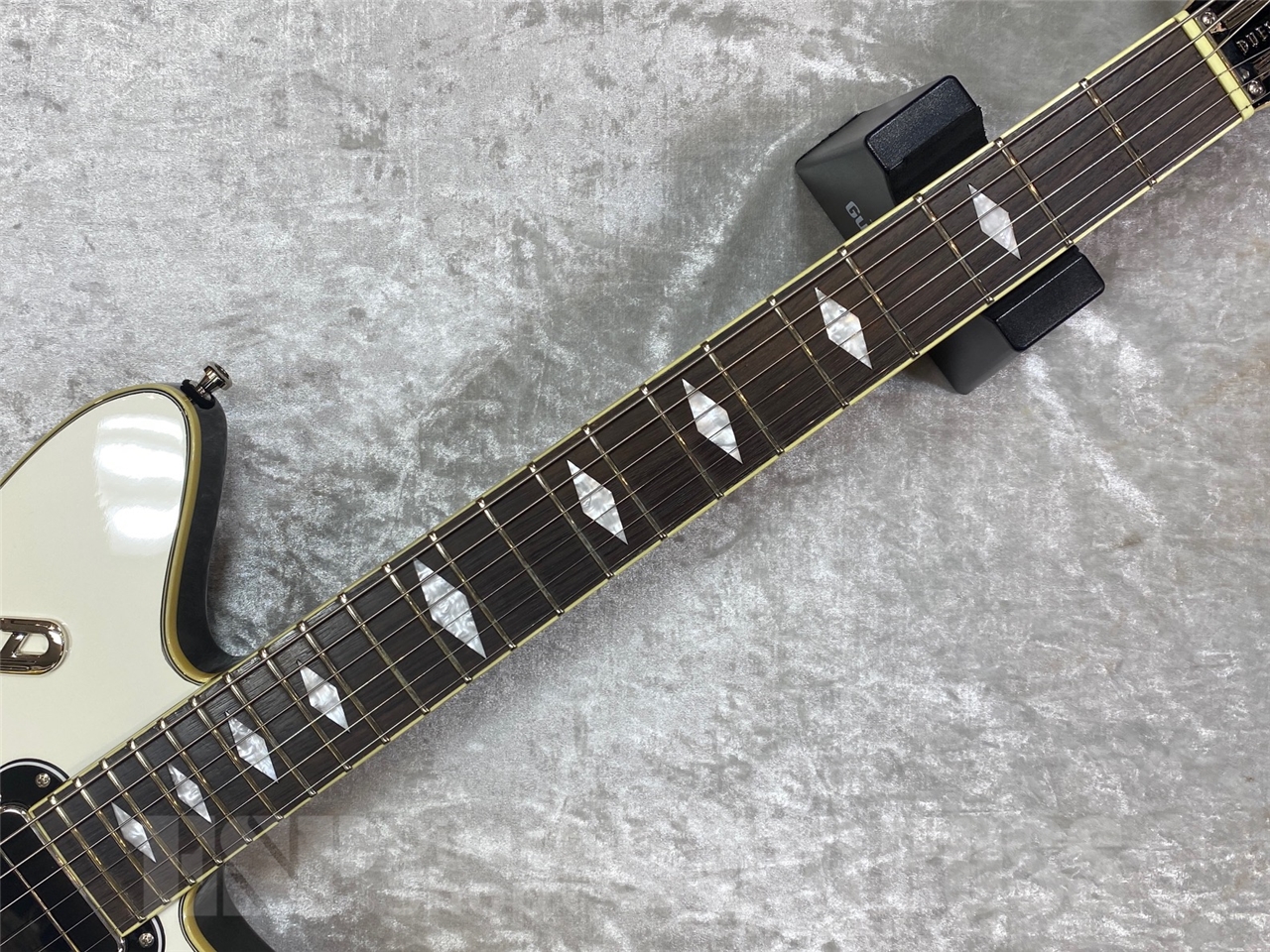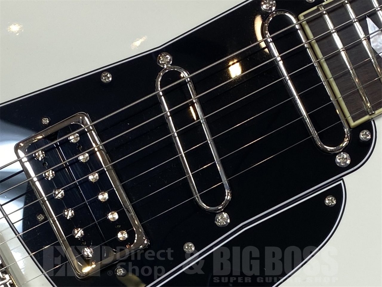 DUESENBERGの中では珍しい完全ソリッドのアルダーボディにエルボーカット、ウエストコンターが施されたPALOMA。ダイアモンドインレイと独特なオフセットシェイプのボディが特徴的です。SSH配列のピックアップは4wayロータリースイッチに接続され、各ポジションはフロント、フロント+リア(タップ)、センター+リア(タップ)、リアの4種類。ブライトでウォームなサウンドから無骨なロックサウンドまで、幅広い演奏ジャンルにフレキシブルに対応します。