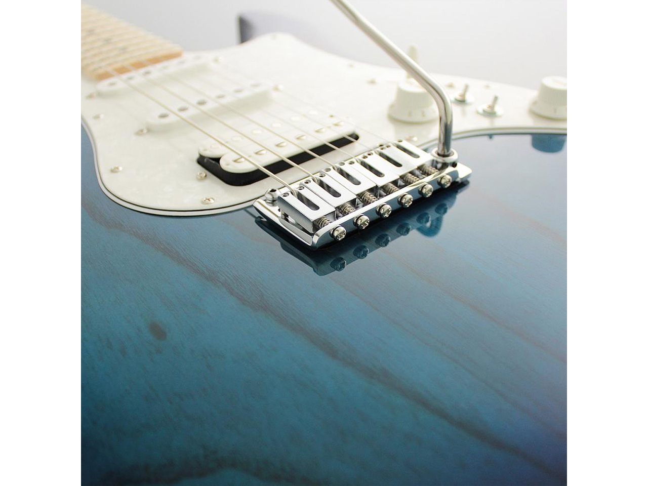 当モデルは、アッシュボディ、メイプル指板、人気のシースルーブルーバーストカラー。