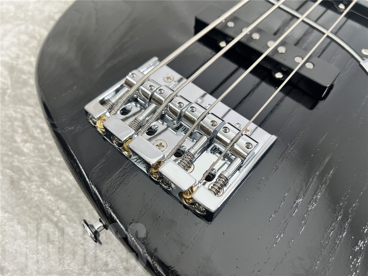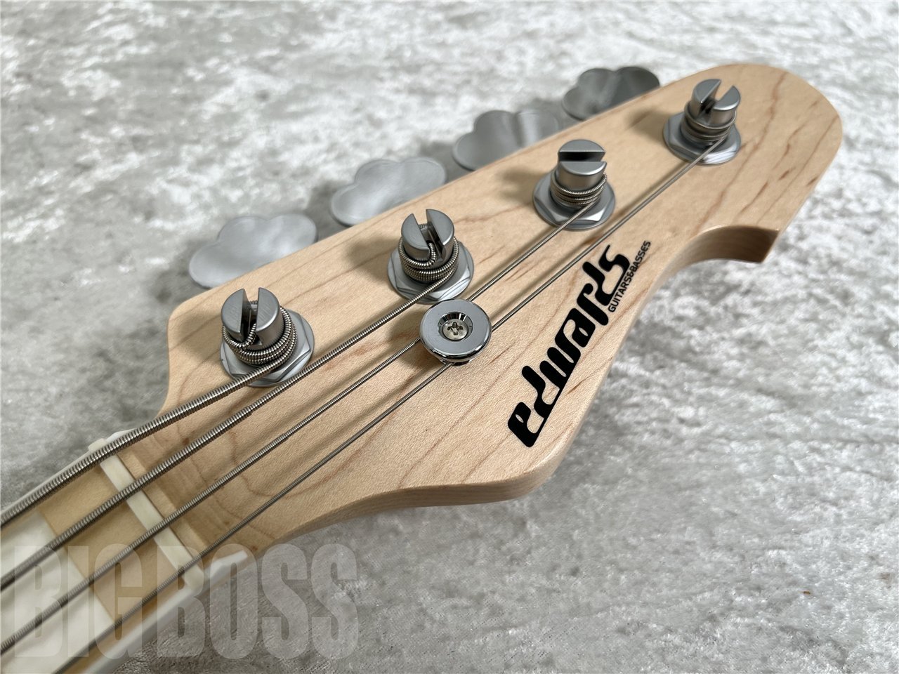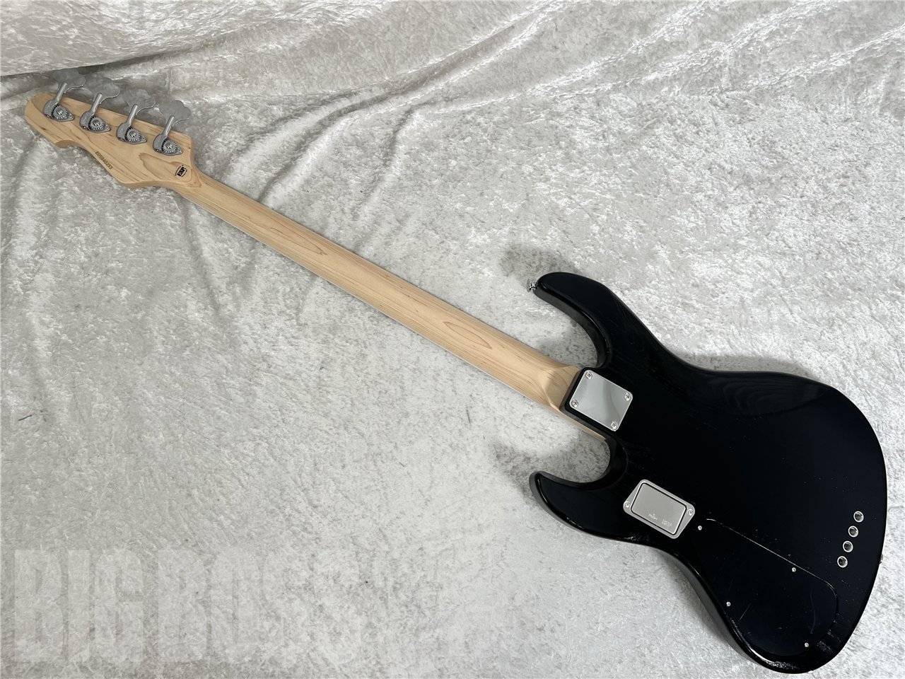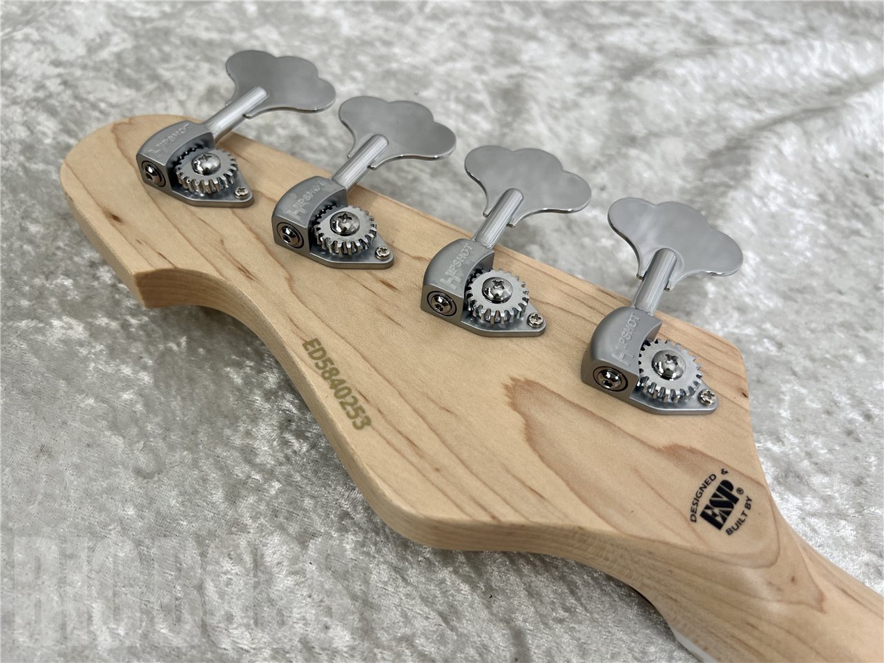 ペグには軽量なHIPSHOT Ultralite®を採用しヘッド落ちを軽減しています。ブリッジはスティールサドルのGOTOH 404SJを搭載。好みにより弦をボディ裏から張ることも可能です。ピックアップはE-AMAZE専用に開発したESPカスタムラボ製のピックアップ、CL-P-J-2を搭載。カスタムラボ独自の銅箔を使用した徹底的なシールディングに加え、ハムキャンセル効果の得られるスプリット・コイルを採用しており、Jスタイルのピックアップながら単体において低ノイズ化を実現しています。