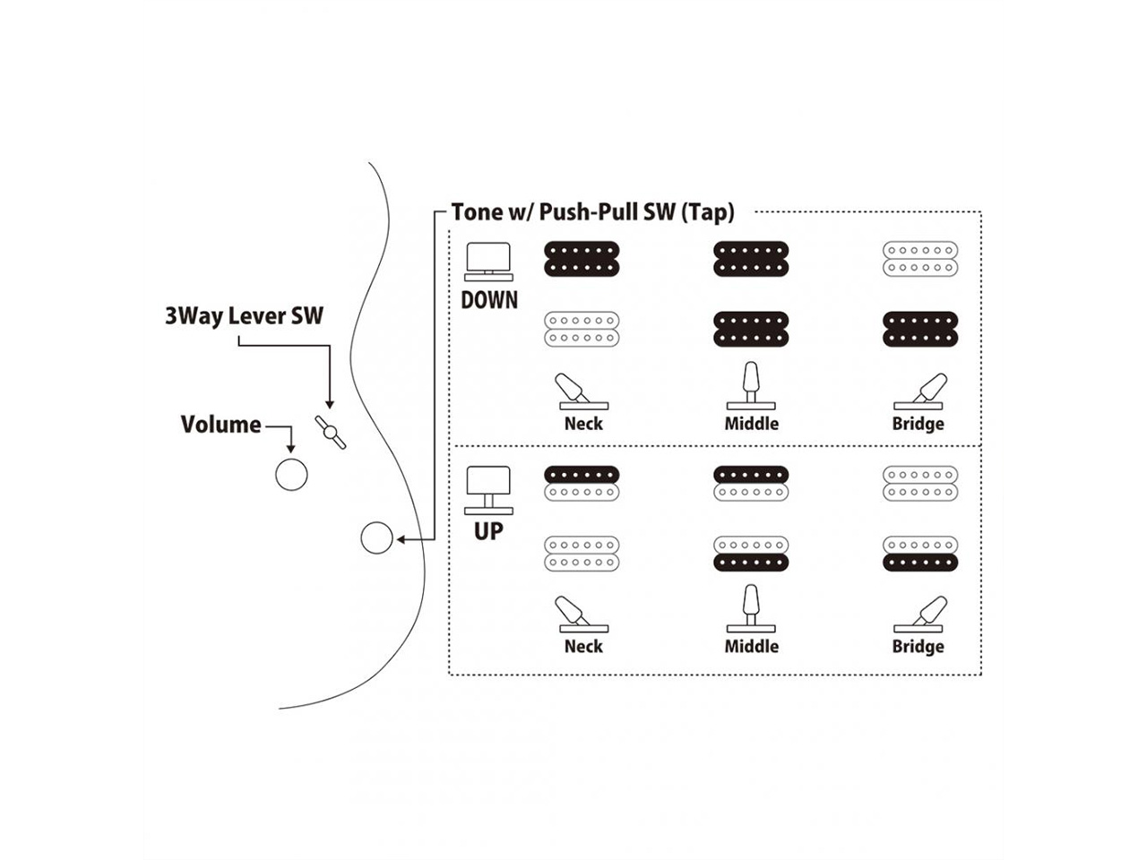 Controls:1Volume, 1Tone w/ Push-Pull SW (Tap), 3Way Lever SW
