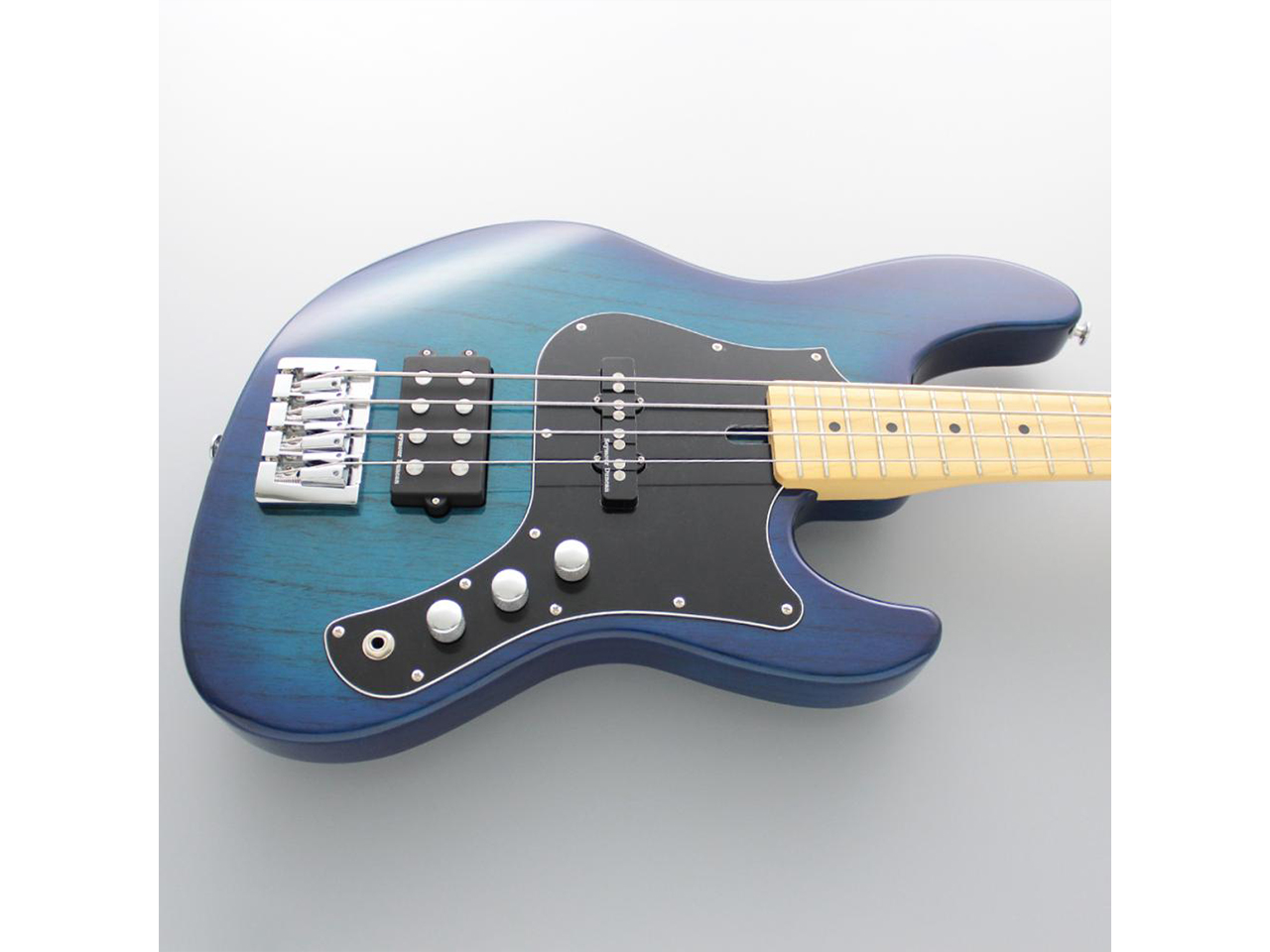 当モデルは、アッシュボディ、メイプル指板、シースルーブルーバーストカラーという組み合わせ。アッシュボディにシースルーブルーバーストカラーという王道の組み合わせの美しさは、絶対的な人気もうなずけます。