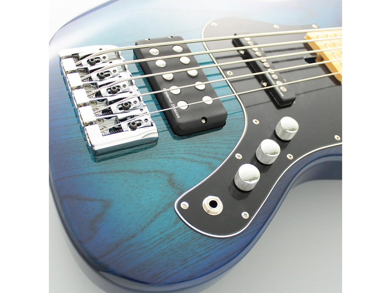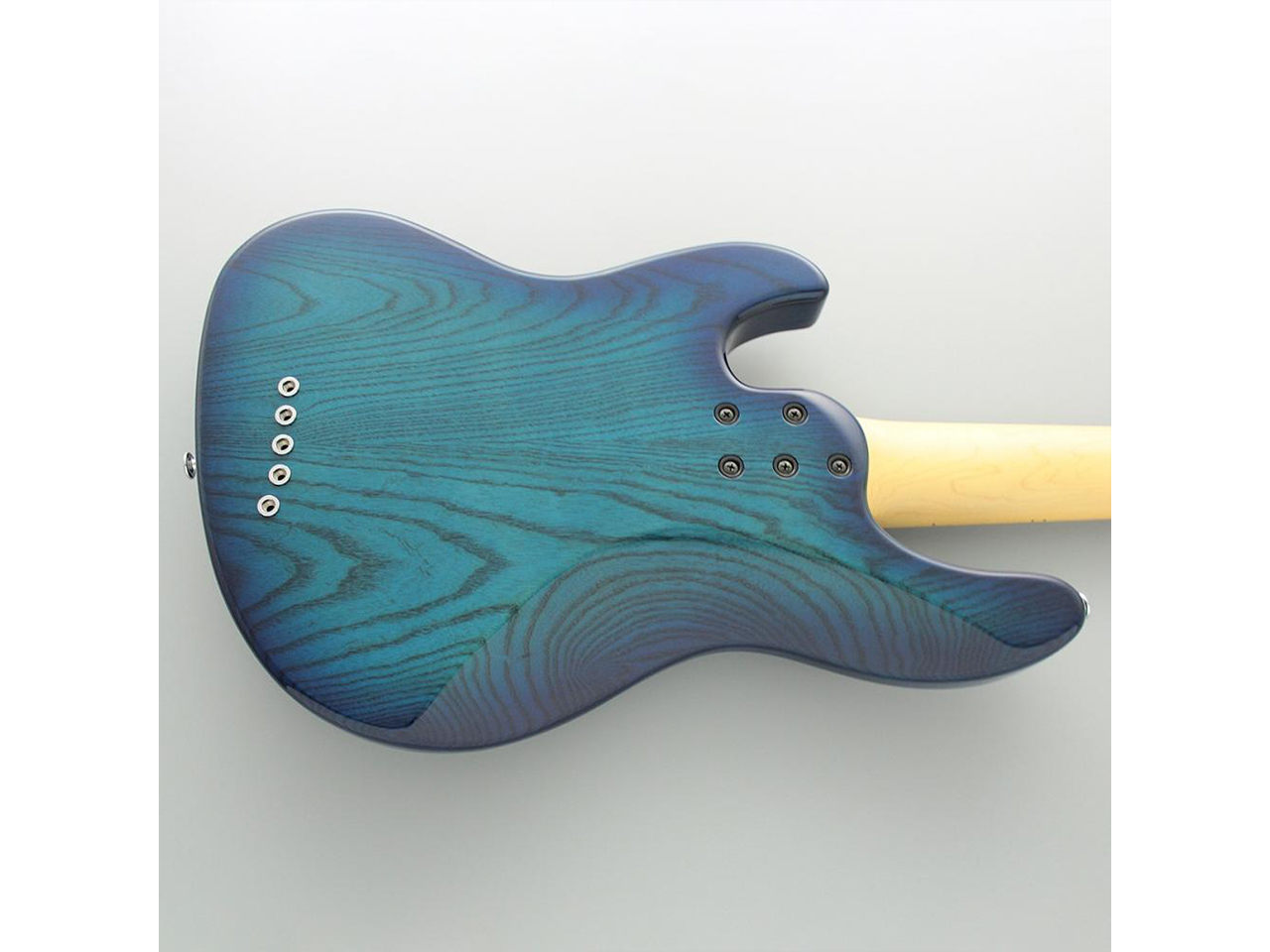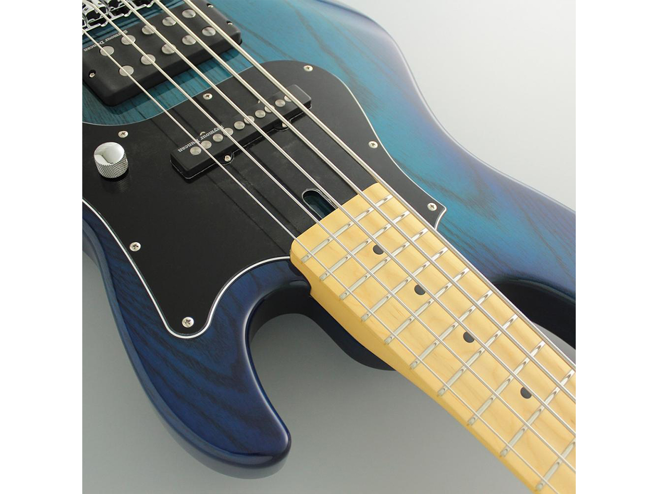 当モデルは、アッシュボディ、メイプル指板、シースルーブルーバーストカラーという組み合わせの5弦ベース。アッシュボディにシースルーブルーバーストカラーという王道の組み合わせの美しさは、絶対的な人気もうなずけます。