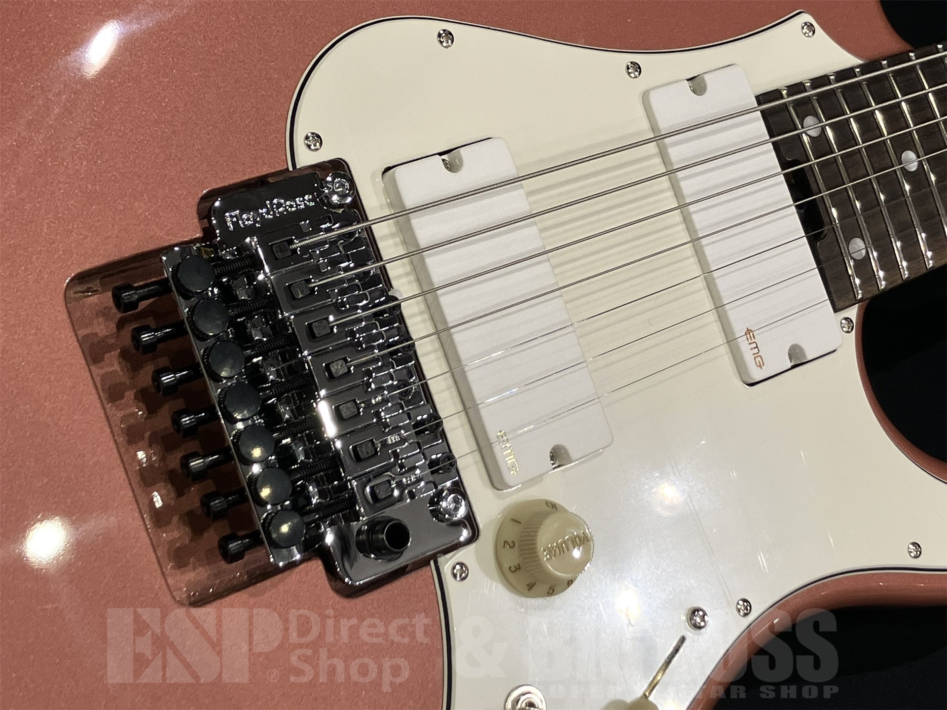 チューニングの狂いを最小限に抑えるロック式トレモロのフロイドローズを搭載し、安定したピッチを約束します。