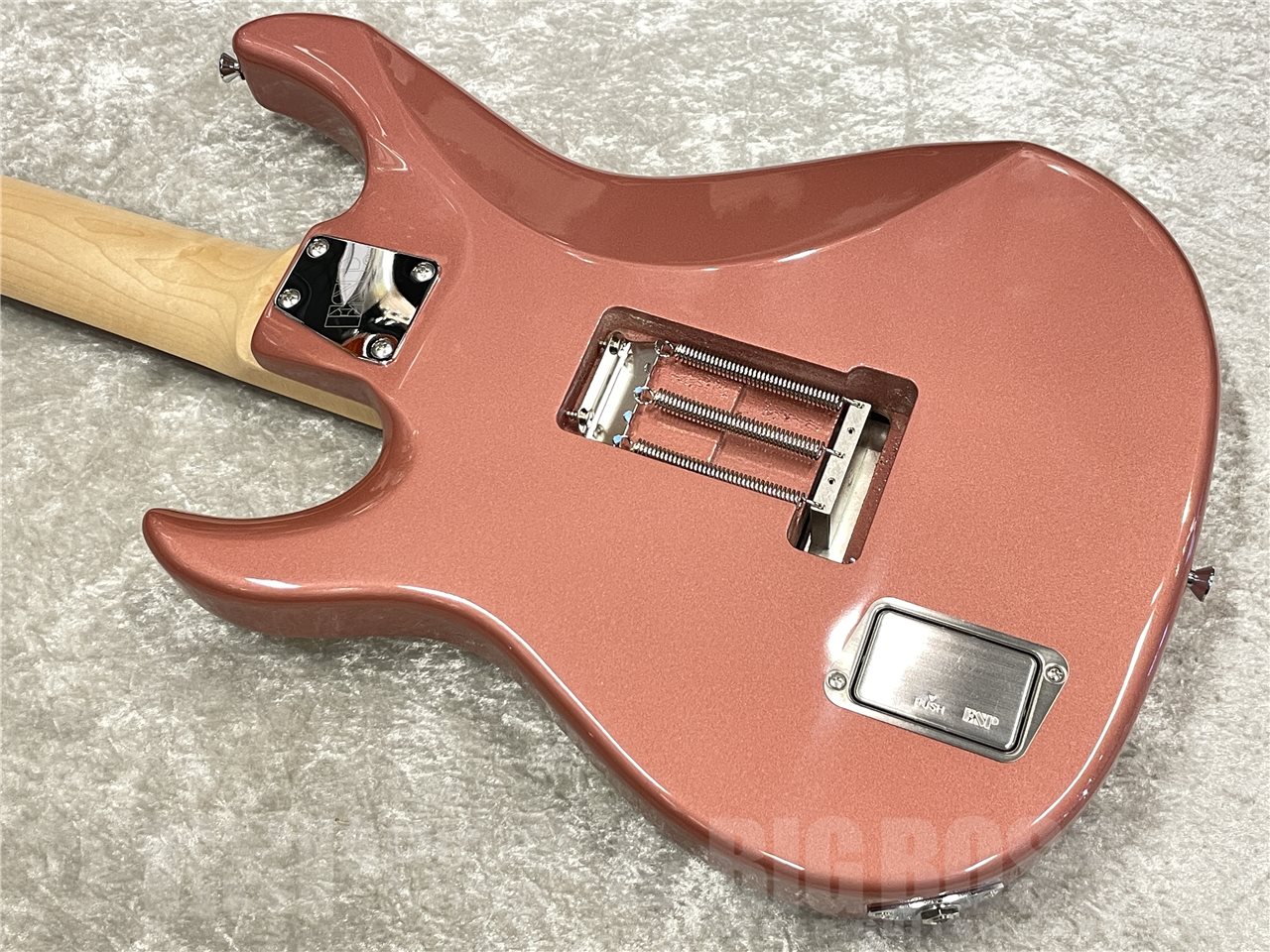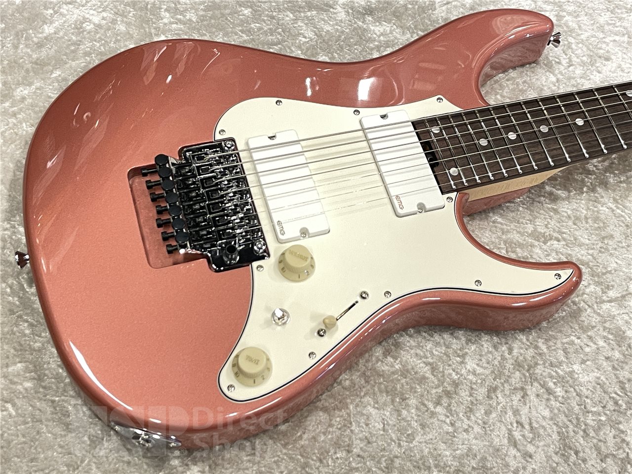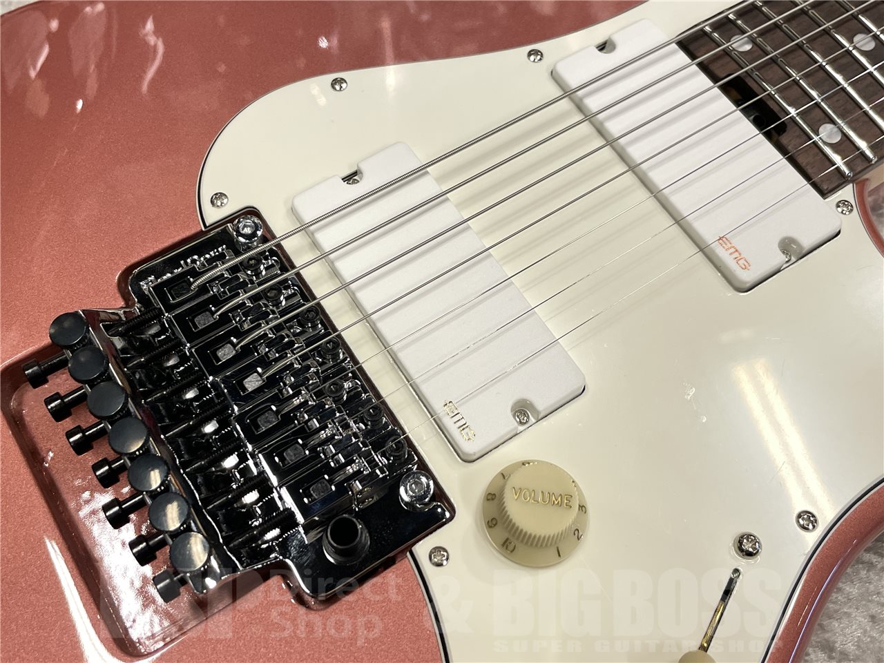 アルダーボディにハードメイプルネックをデタッチャブル方式でジョイント。チューニングの狂いを最小限に抑えるロック式トレモロのフロイドローズを搭載し、安定したピッチを約束します。