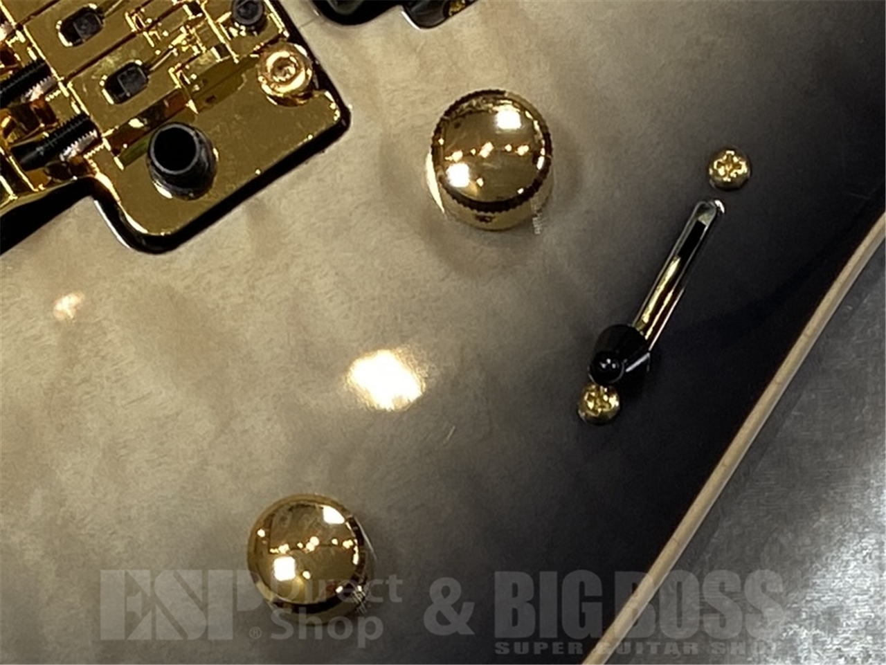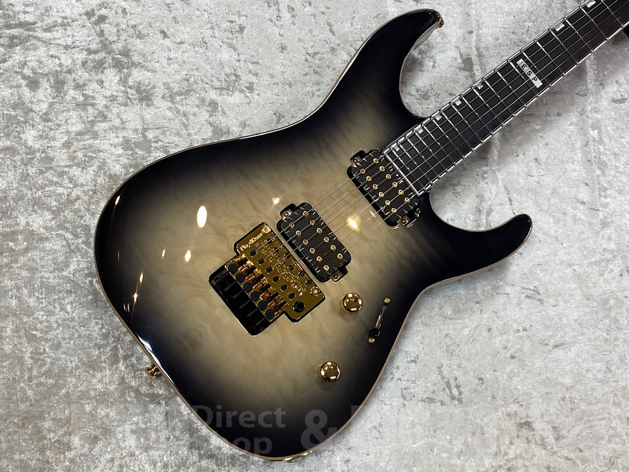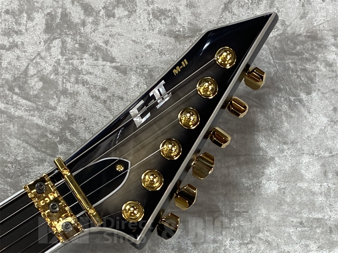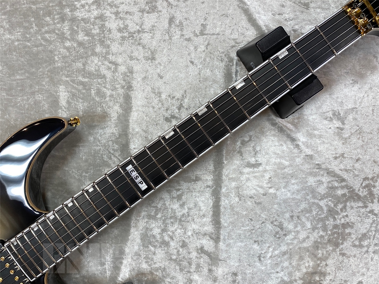 美麗なキルテッドメイプルをトップ材に採用したM-IIです。ボディはアルダーバック、ネックはハードメイプルでボディにはセットネック方式でジョイントされています。指板はエボニーです。セットネックですがヒール部は滑らかに加工されています。