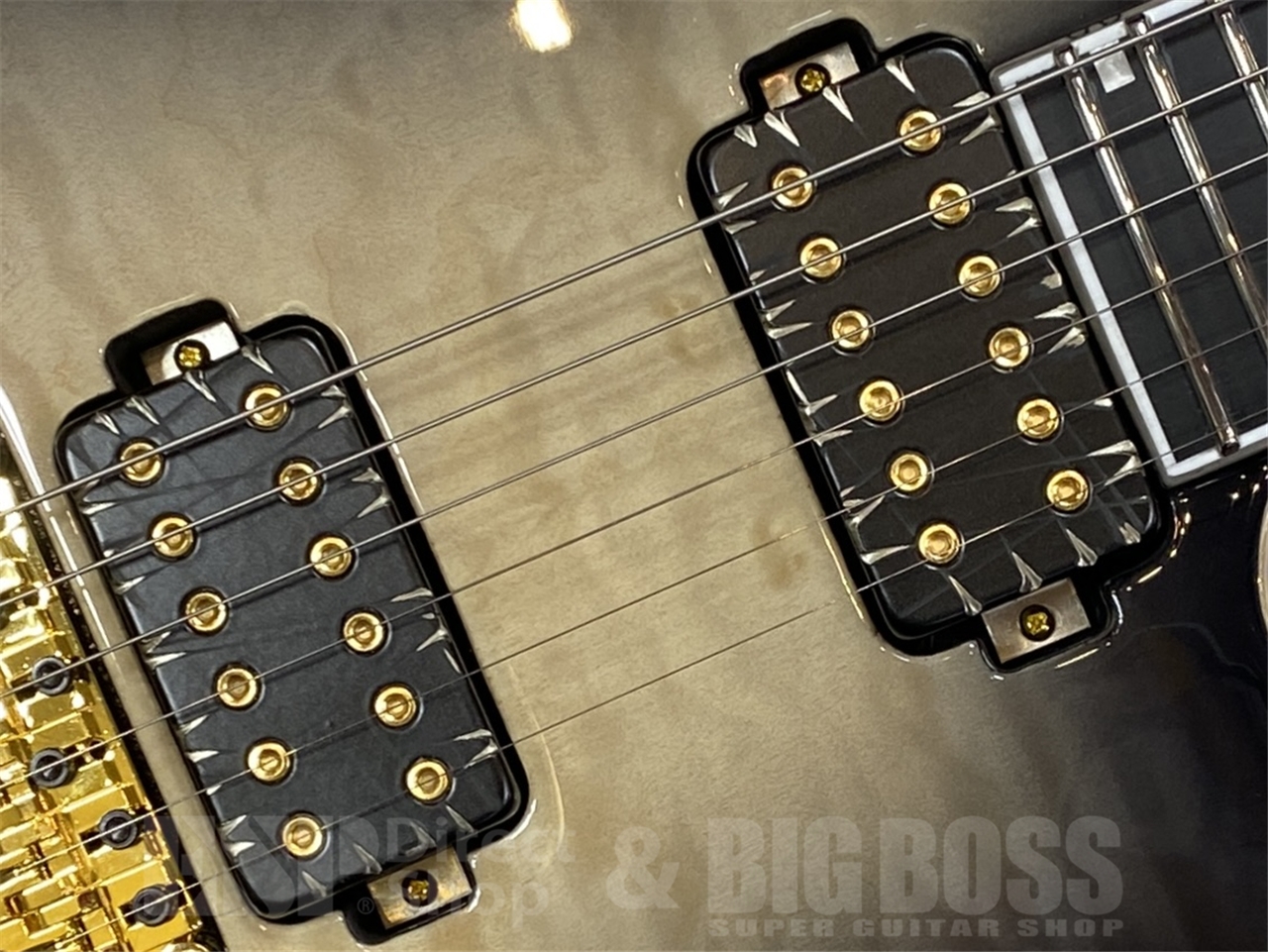 ブリッジにはフロイドローズオリジナルを搭載しています。ピックアップはパッシブタイプのBare Knuckle Aftermath Battlewormで、ボディにダイレクトマウントで搭載されています。マスタートーンのノブを引き上げる事で、コイルスプリットできます。