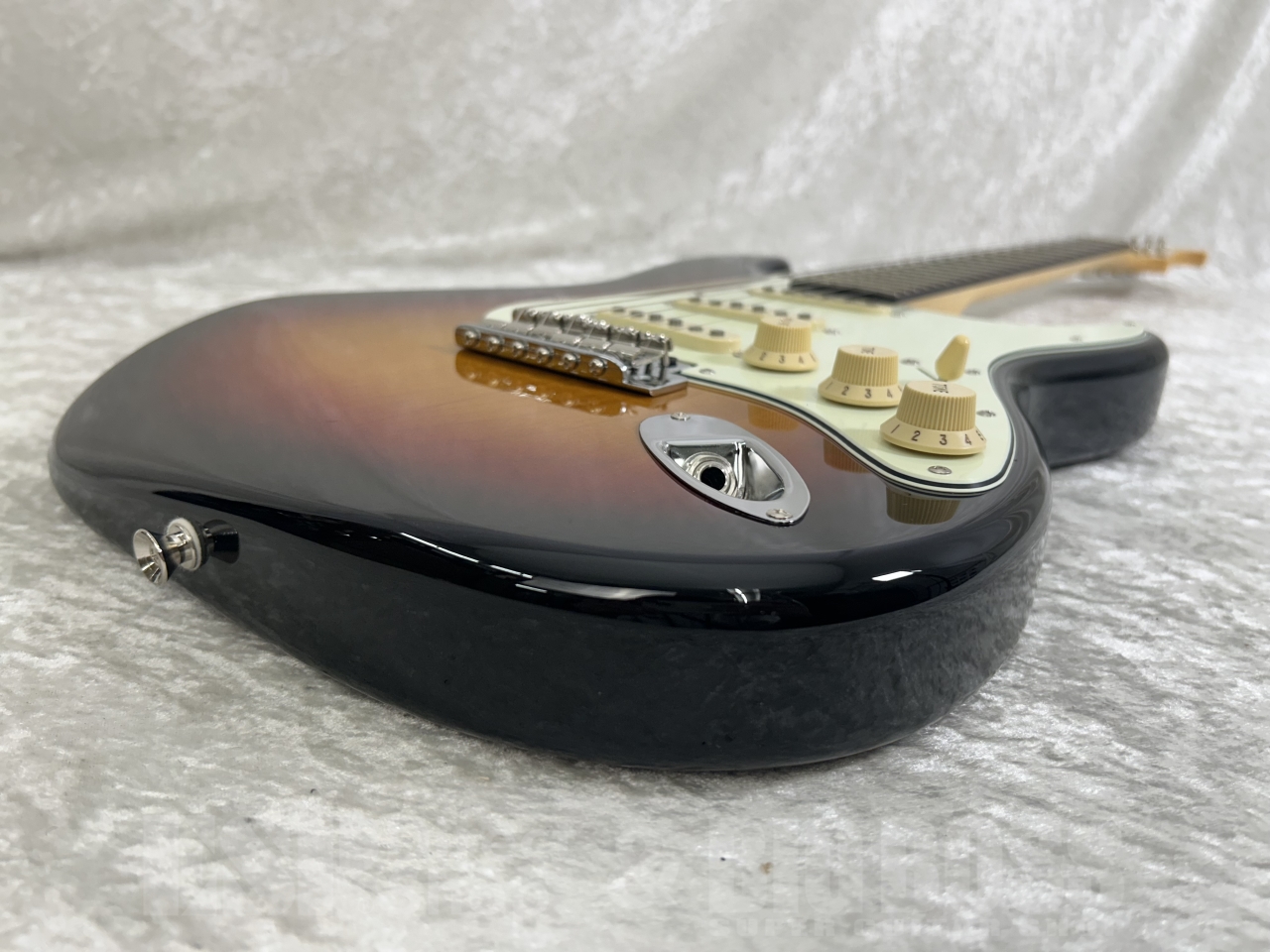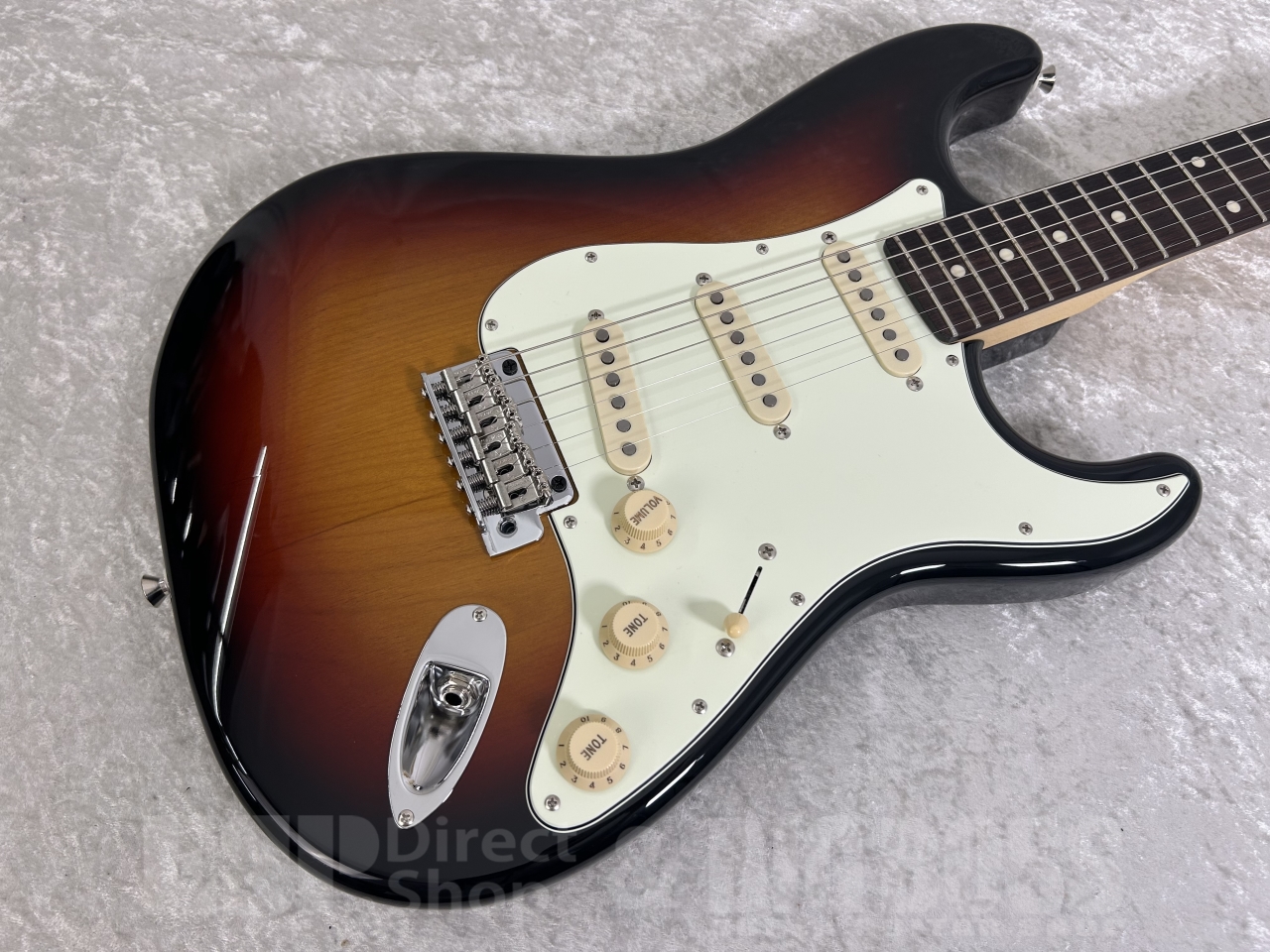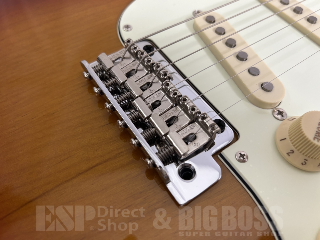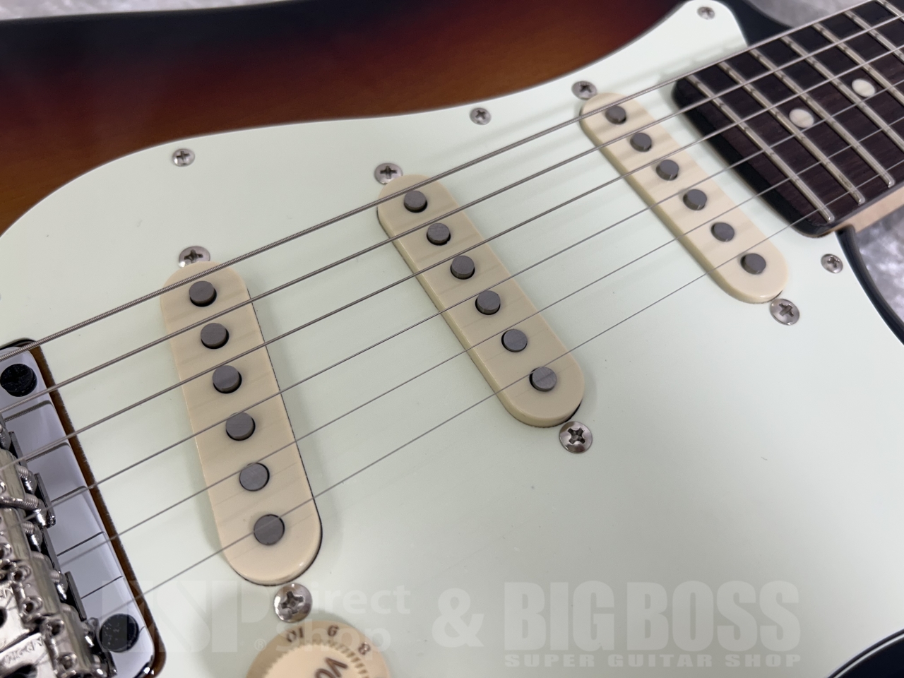 当モデルは、アルダーボディ、ローズウッド指板、3S配列、3トーンサンバーストカラーという定番の組み合わせ。