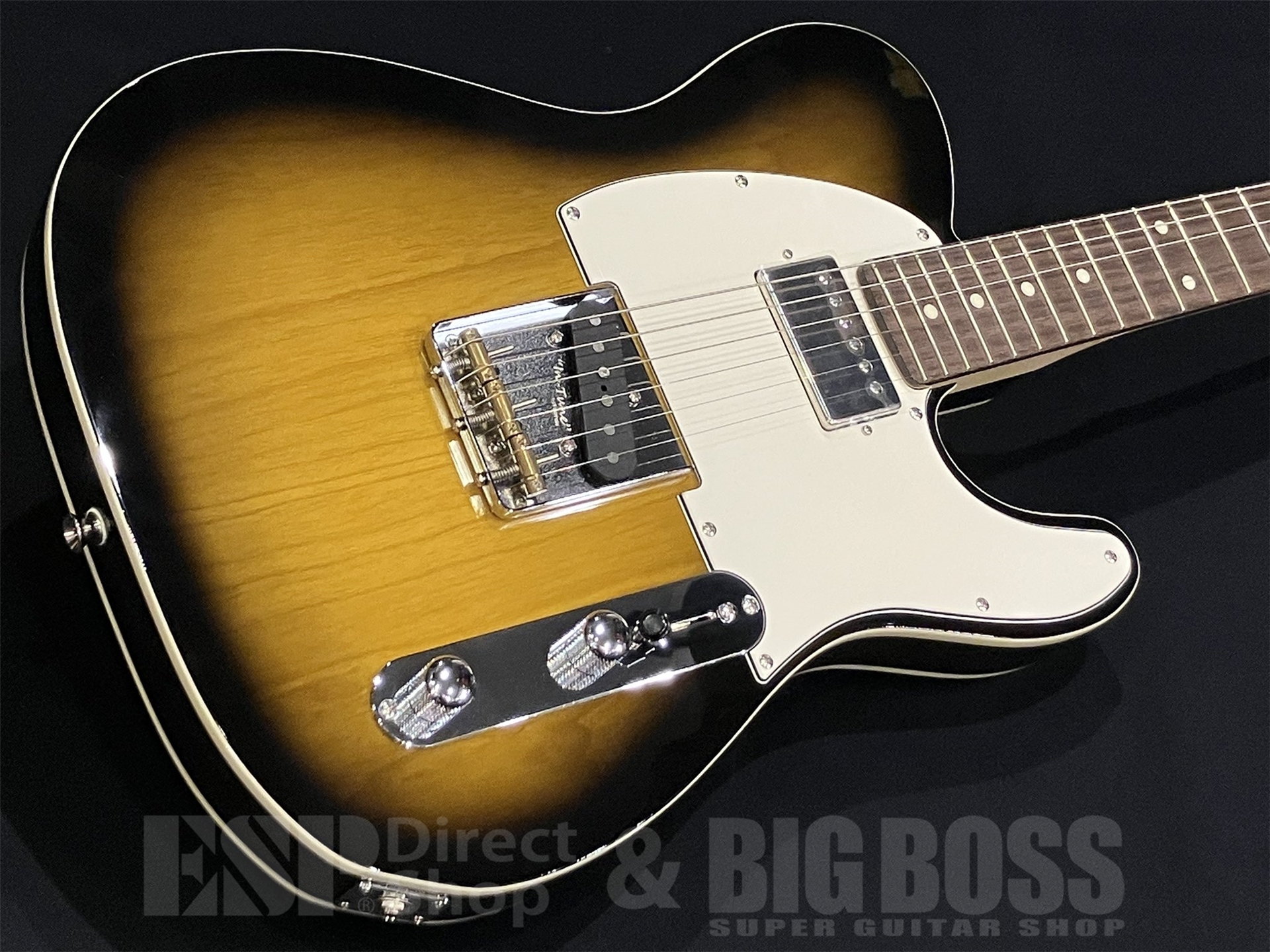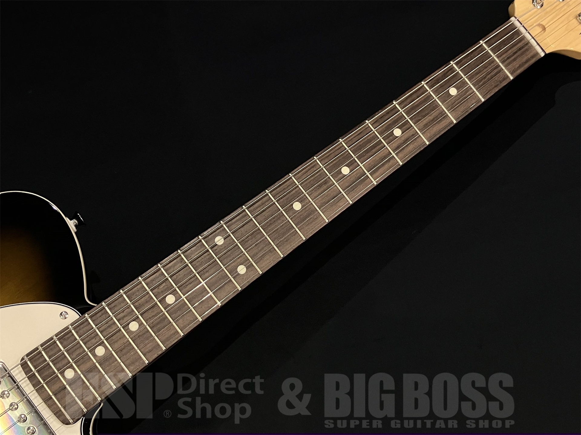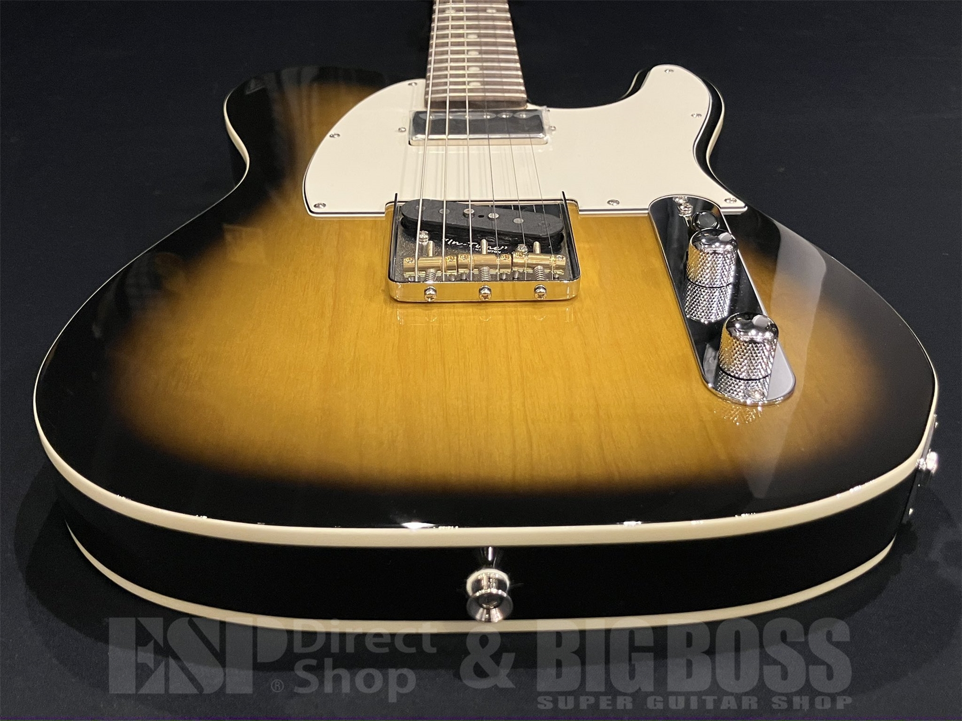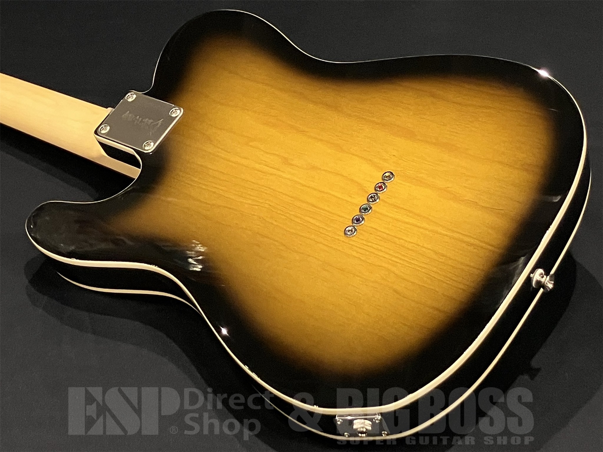 当モデルは、アッシュボディ、ローズウッド指板、2トーンサンバーストカラーという組み合わせ。