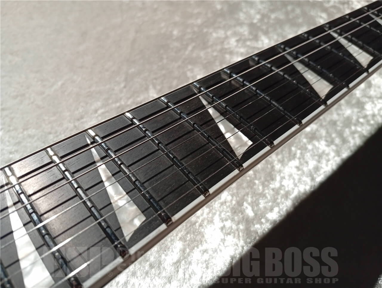 メイプルネックのジョイントはスルーネック方式を採用しており、ネックのヒール部は滑らかに加工されているのでハイポジションでのプレイヤビリティも良好。