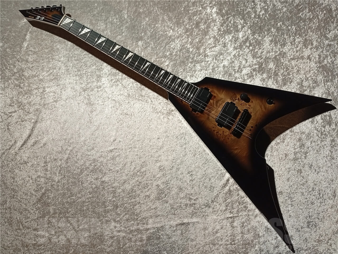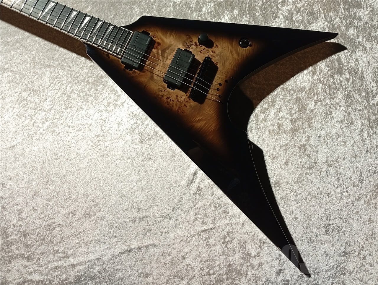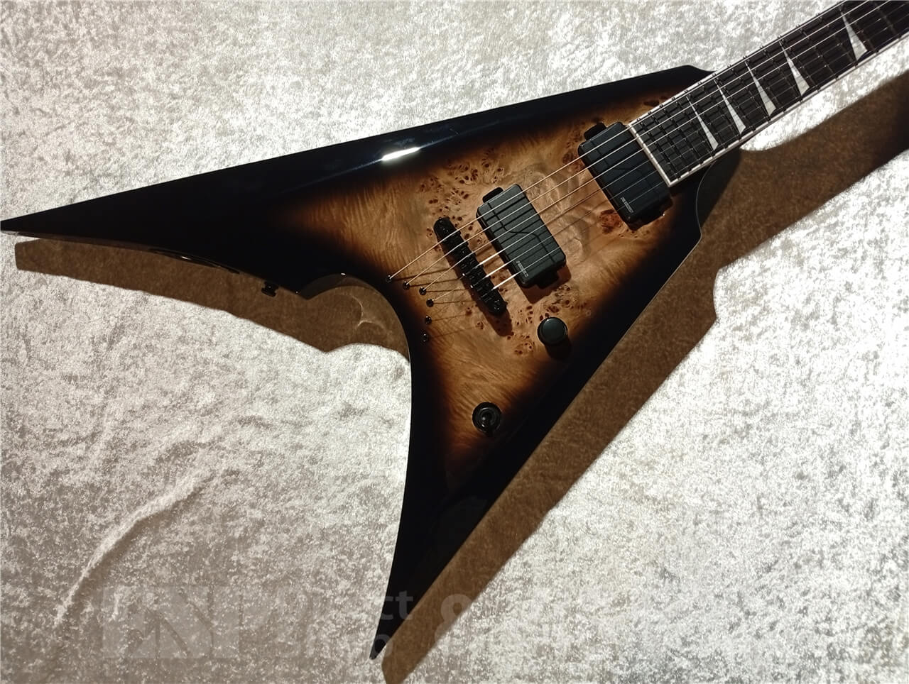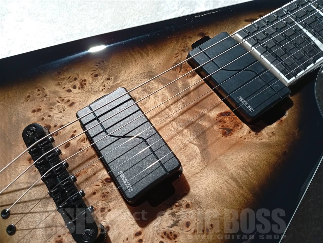 バールメイプルトップ・アルダーバックのボディに剛性の高い3ピースハードメイプルネック、指板はエボニーを採用。